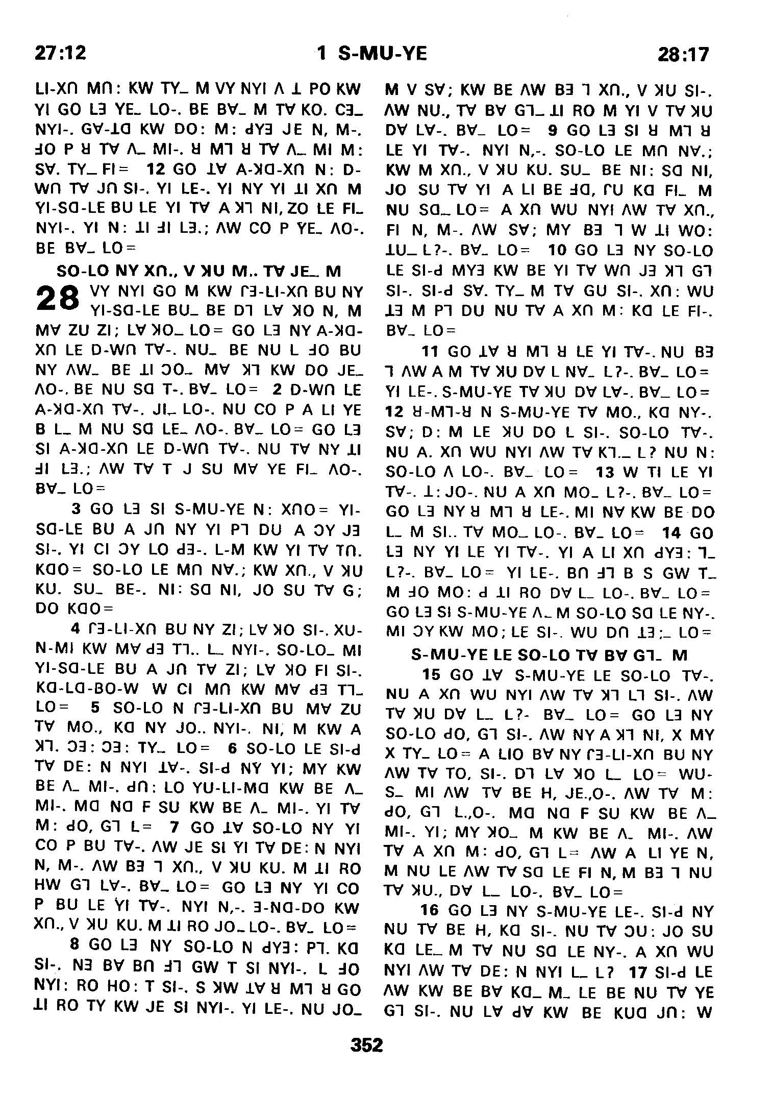 1980年傈僳語聖經全書 撒母耳記上 27 章 12 節到 28 章 17 節