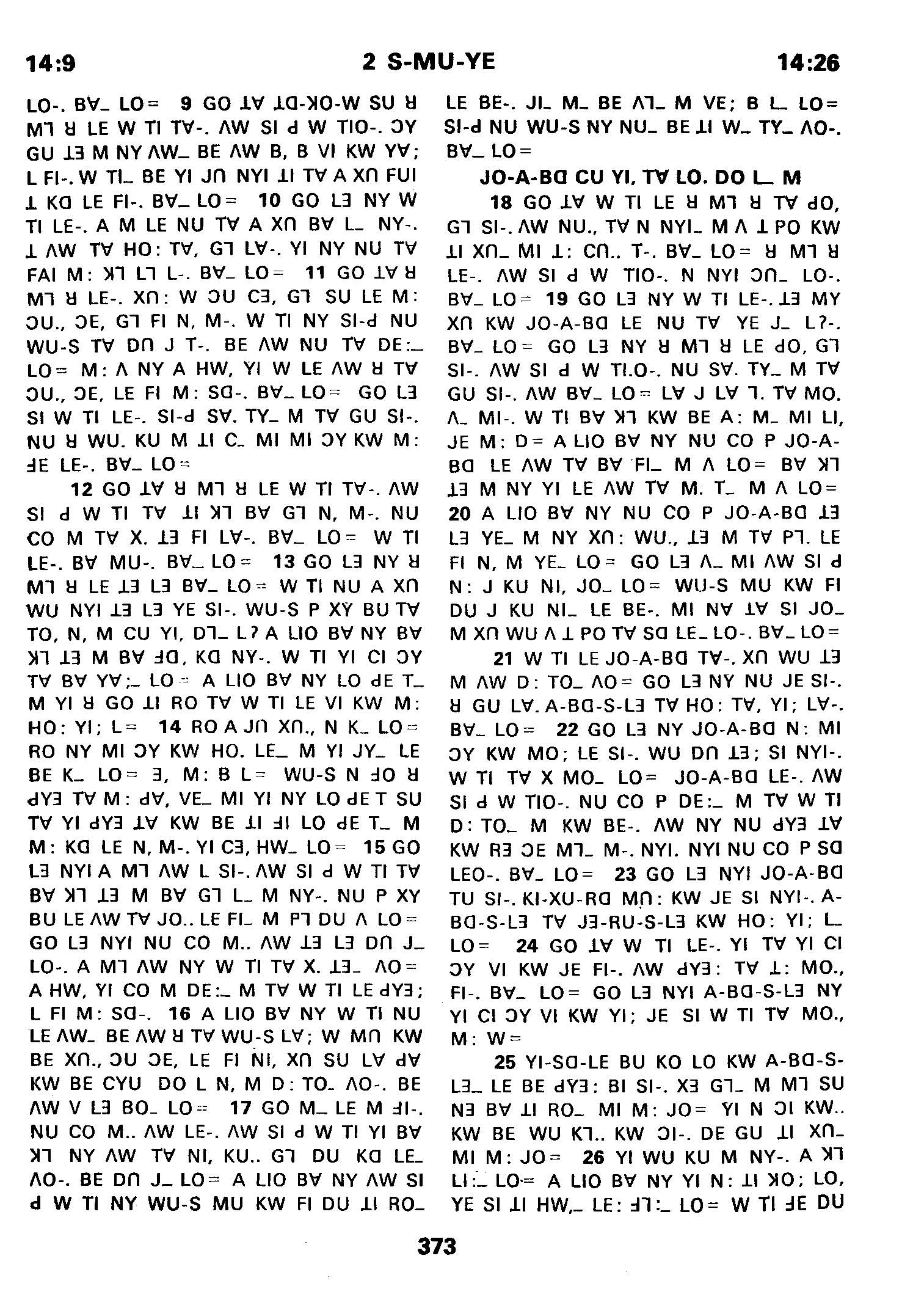 1980年傈僳語聖經全書 撒母耳記下 14 章 9 節到 14 章 26 節