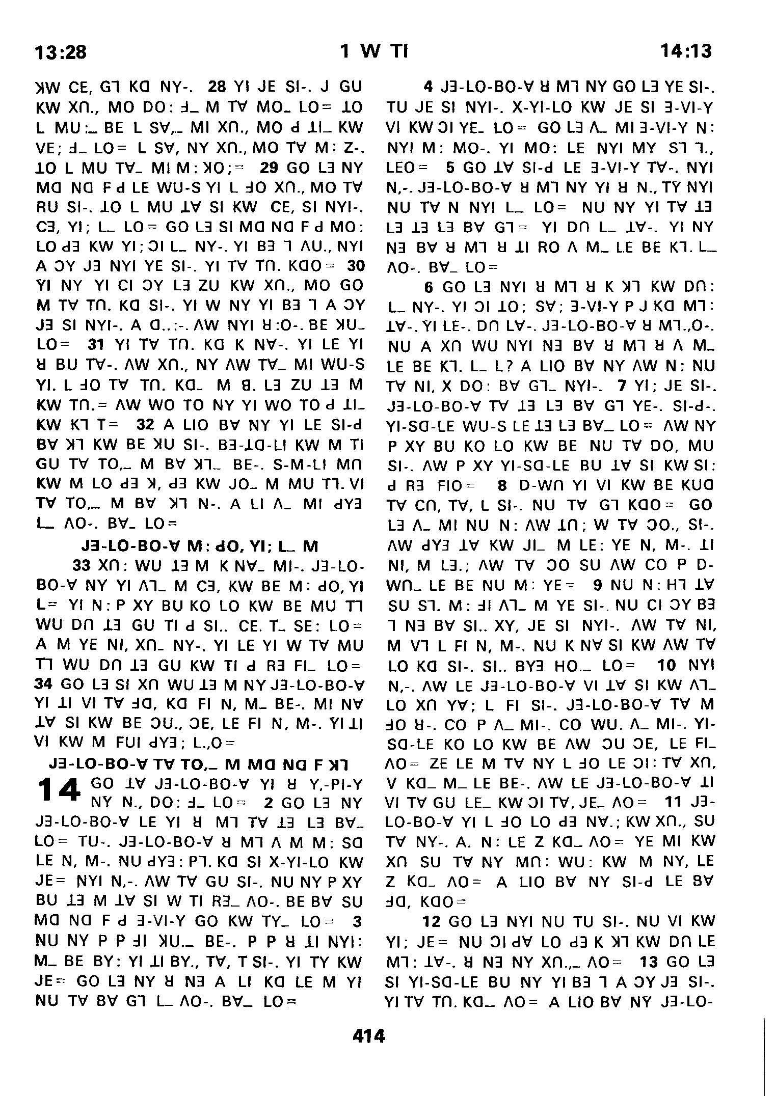 1980年傈僳語聖經全書 列王紀上 13 章 28 節到 14 章 13 節