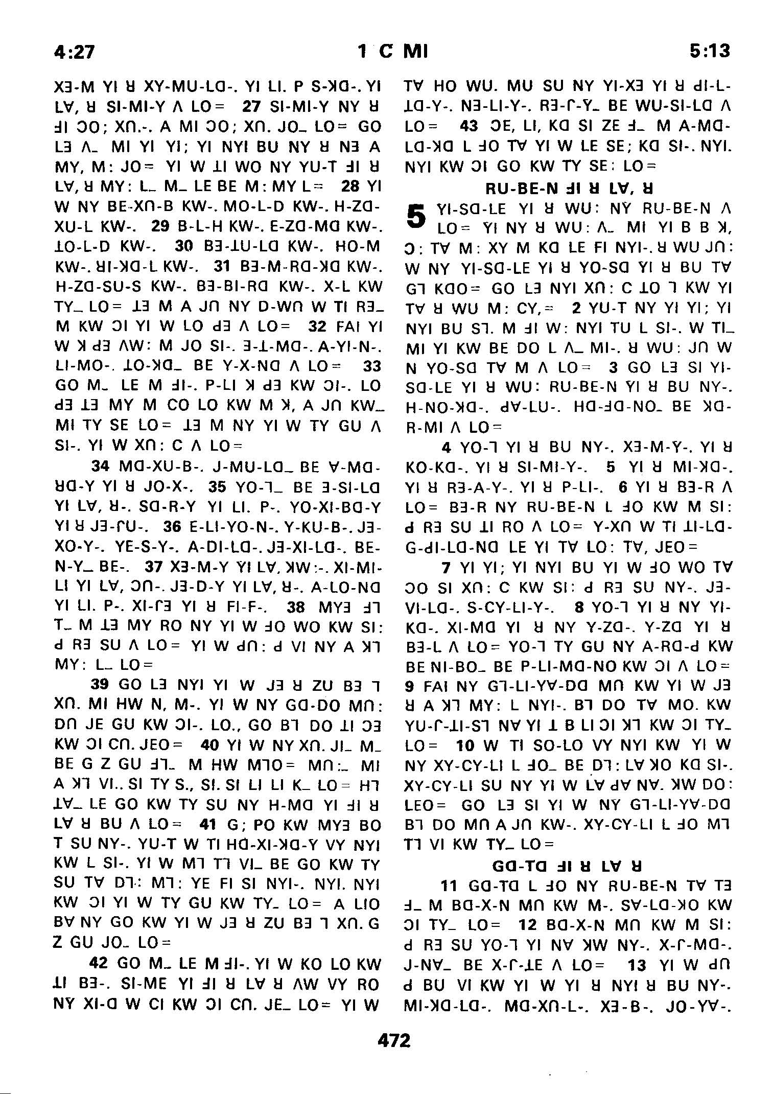 1980年傈僳語聖經全書 歷代志上 4 章 27 節到 5 章 13 節