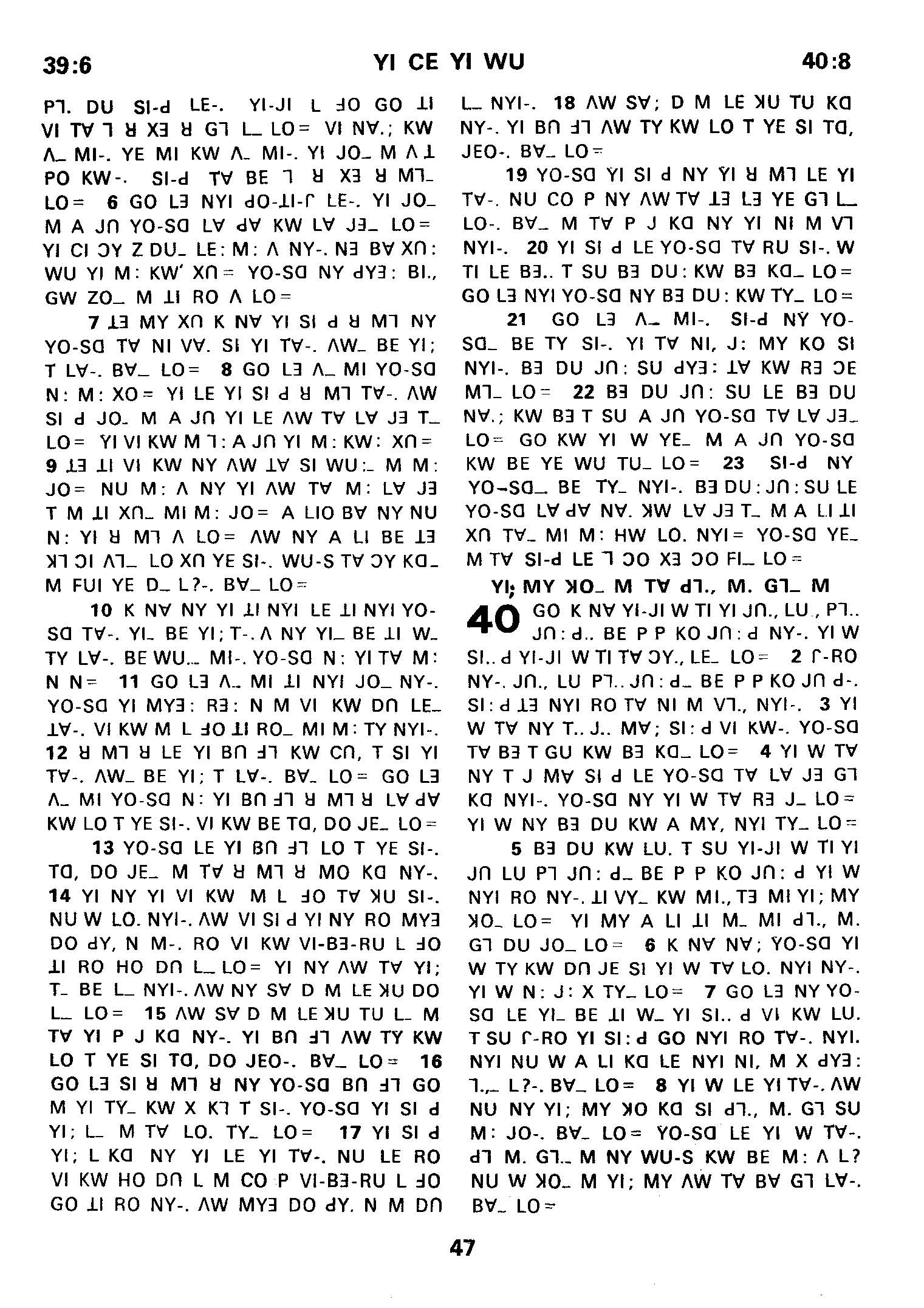 1980年傈僳語聖經全書 創世記 39 章 6 節到 40 章 8 節