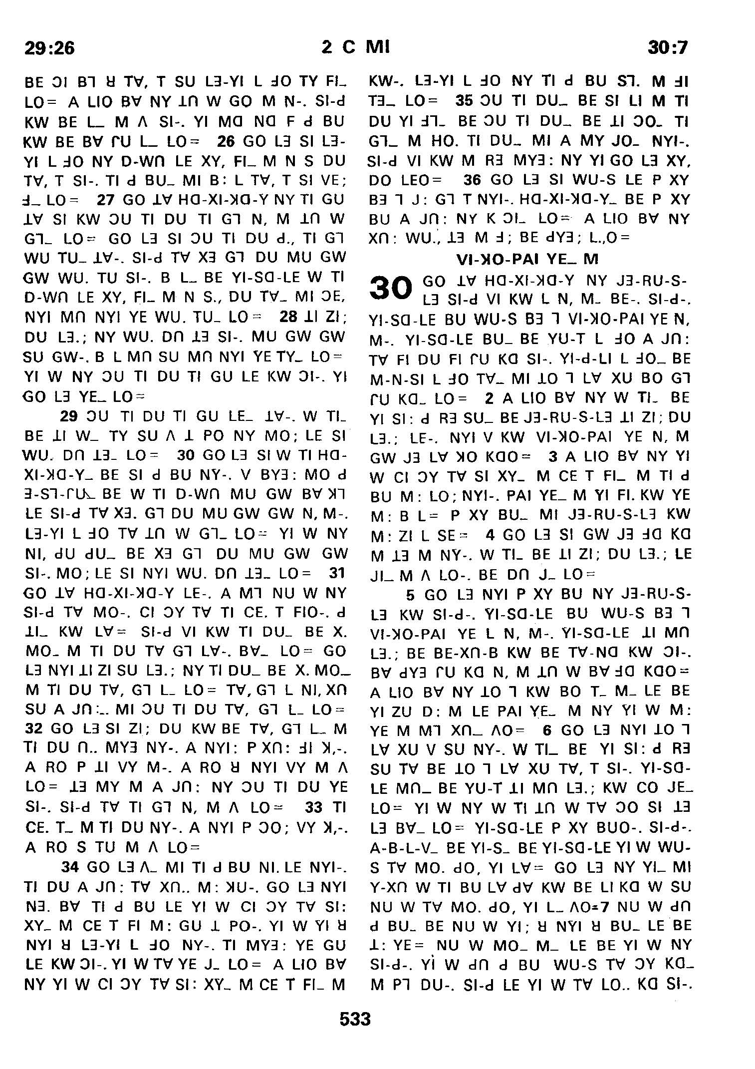 1980年傈僳語聖經全書 歷代志下 29 章 26 節到 30 章 7 節
