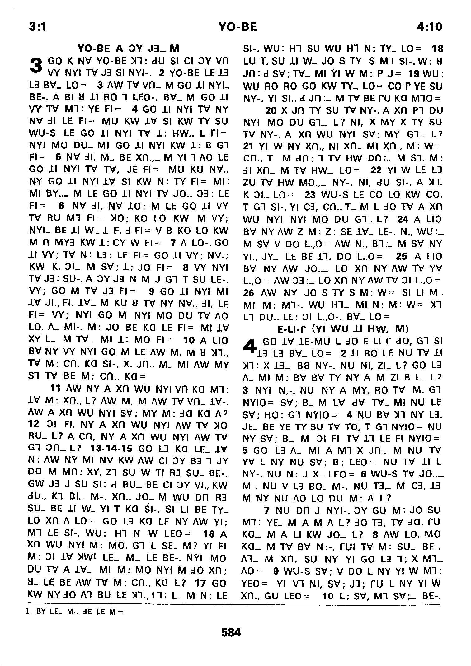 1980年傈僳語聖經全書 約伯記 3 章 1 節到 4 章 10 節