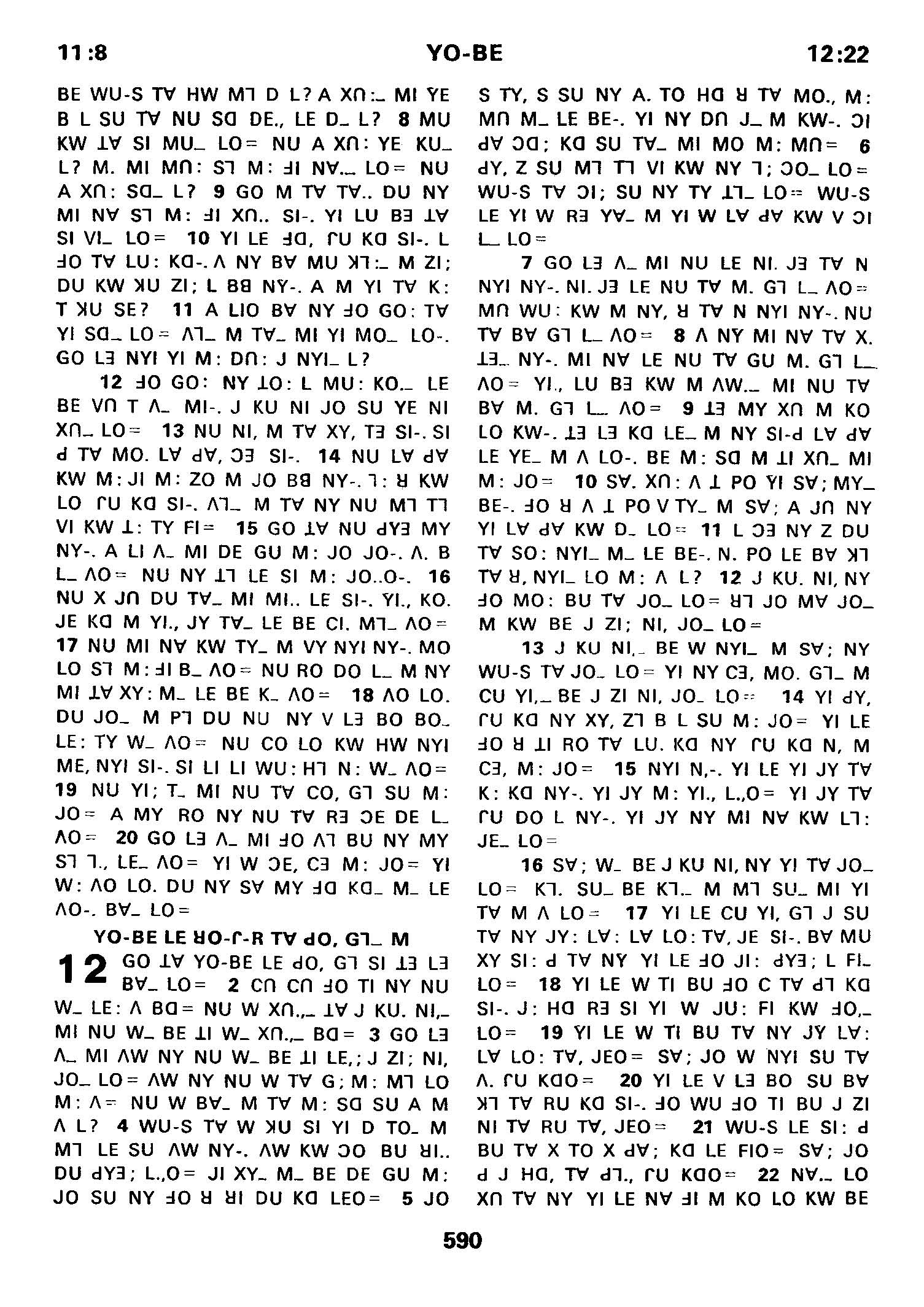 1980年傈僳語聖經全書 約伯記 11 章 8 節到 12 章 22 節