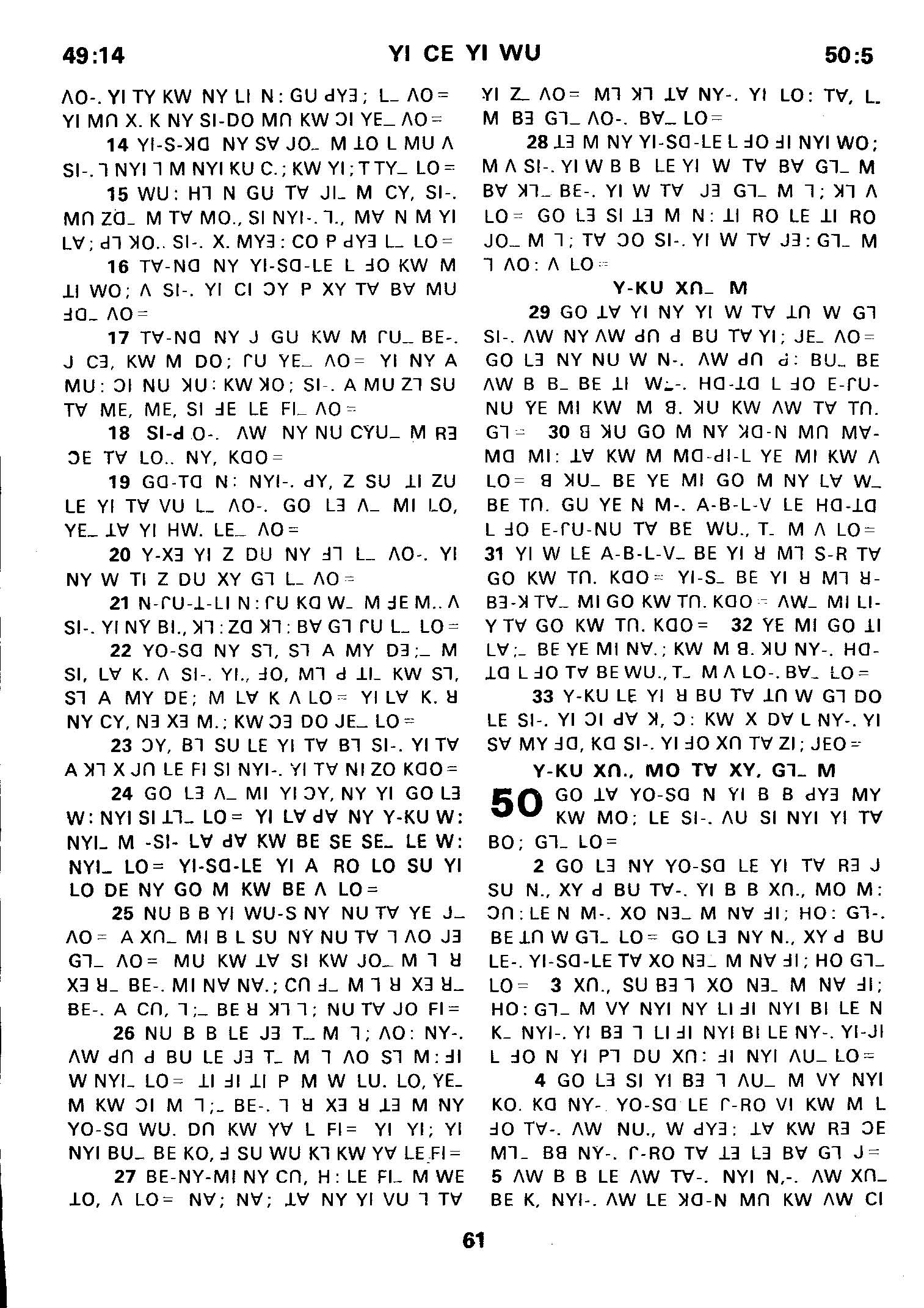 1980年傈僳語聖經全書 創世記 49 章 14 節到 50 章 5 節