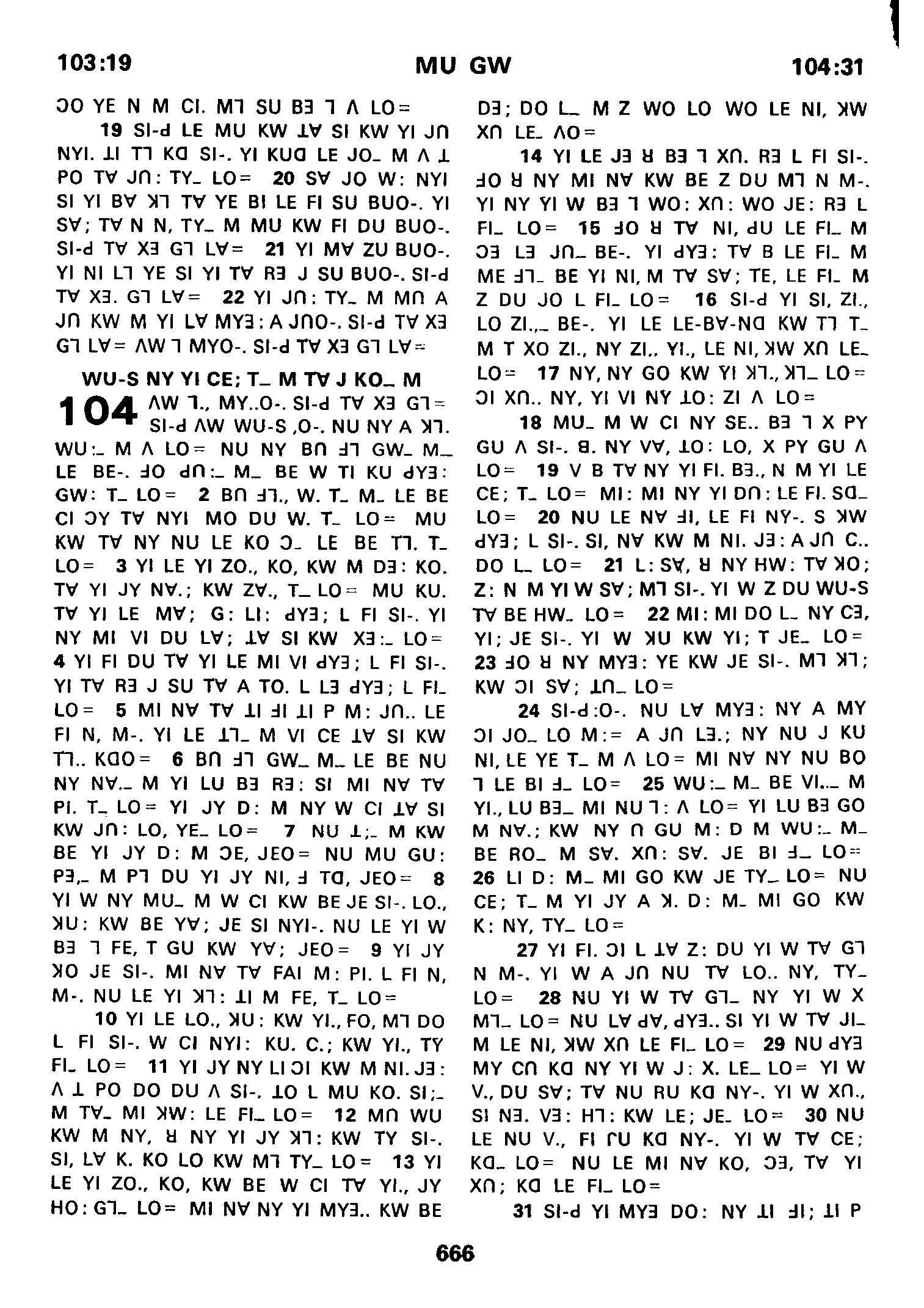 1980年傈僳語聖經全書 詩篇 103 章 19 節到 104 章 31 節