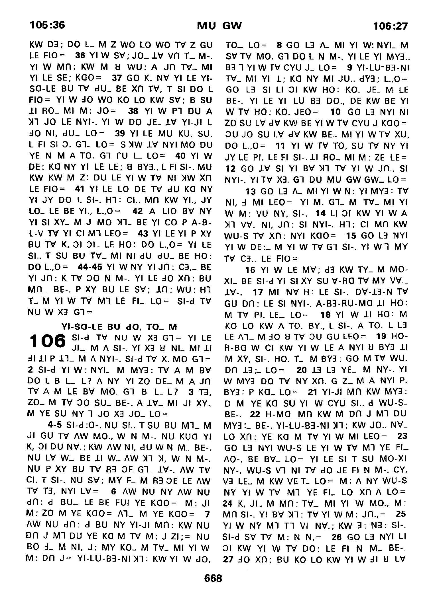 1980年傈僳語聖經全書 詩篇 105 章 36 節到 106 章 27 節
