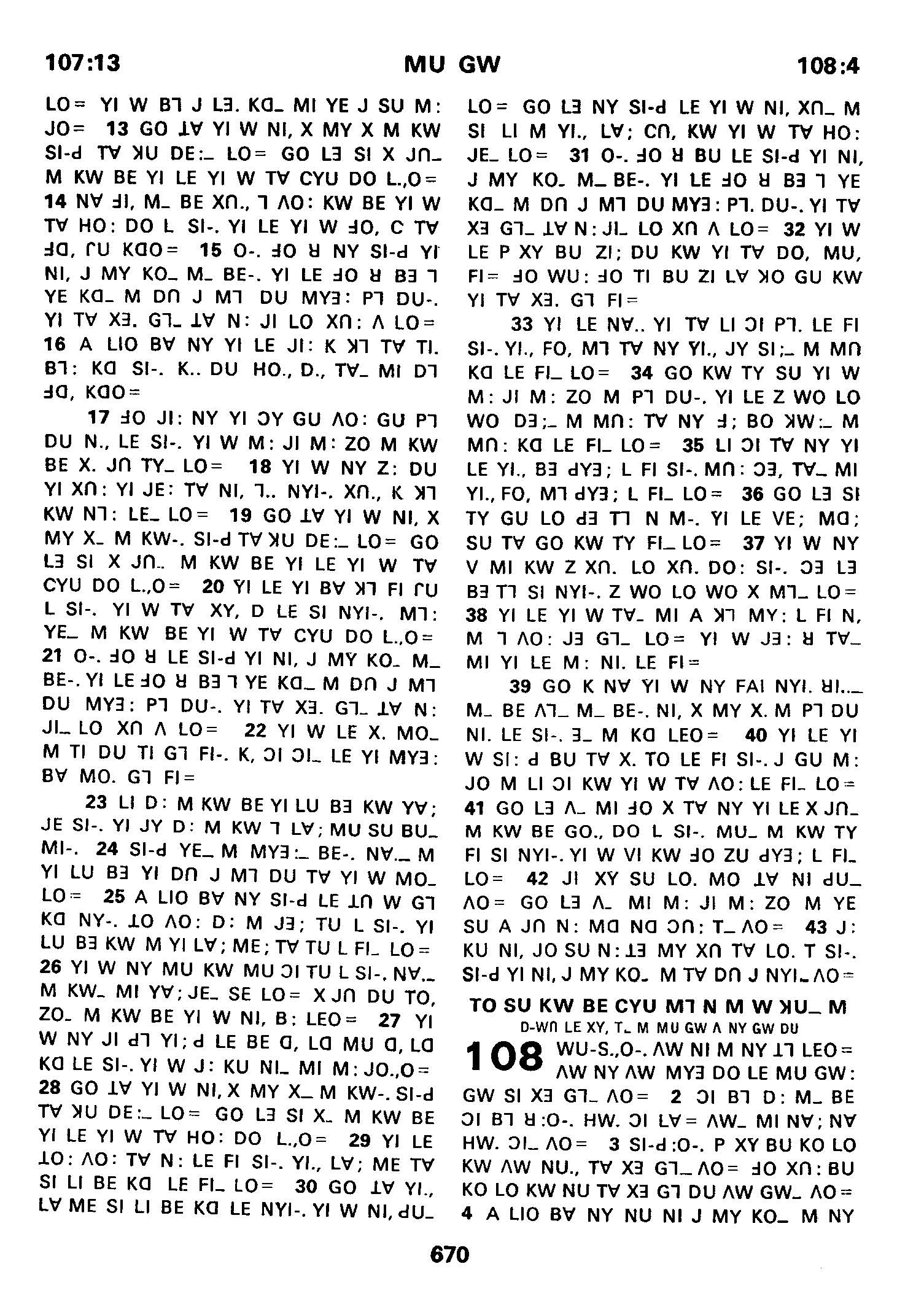 1980年傈僳語聖經全書 詩篇 107 章 13 節到 108 章 4 節