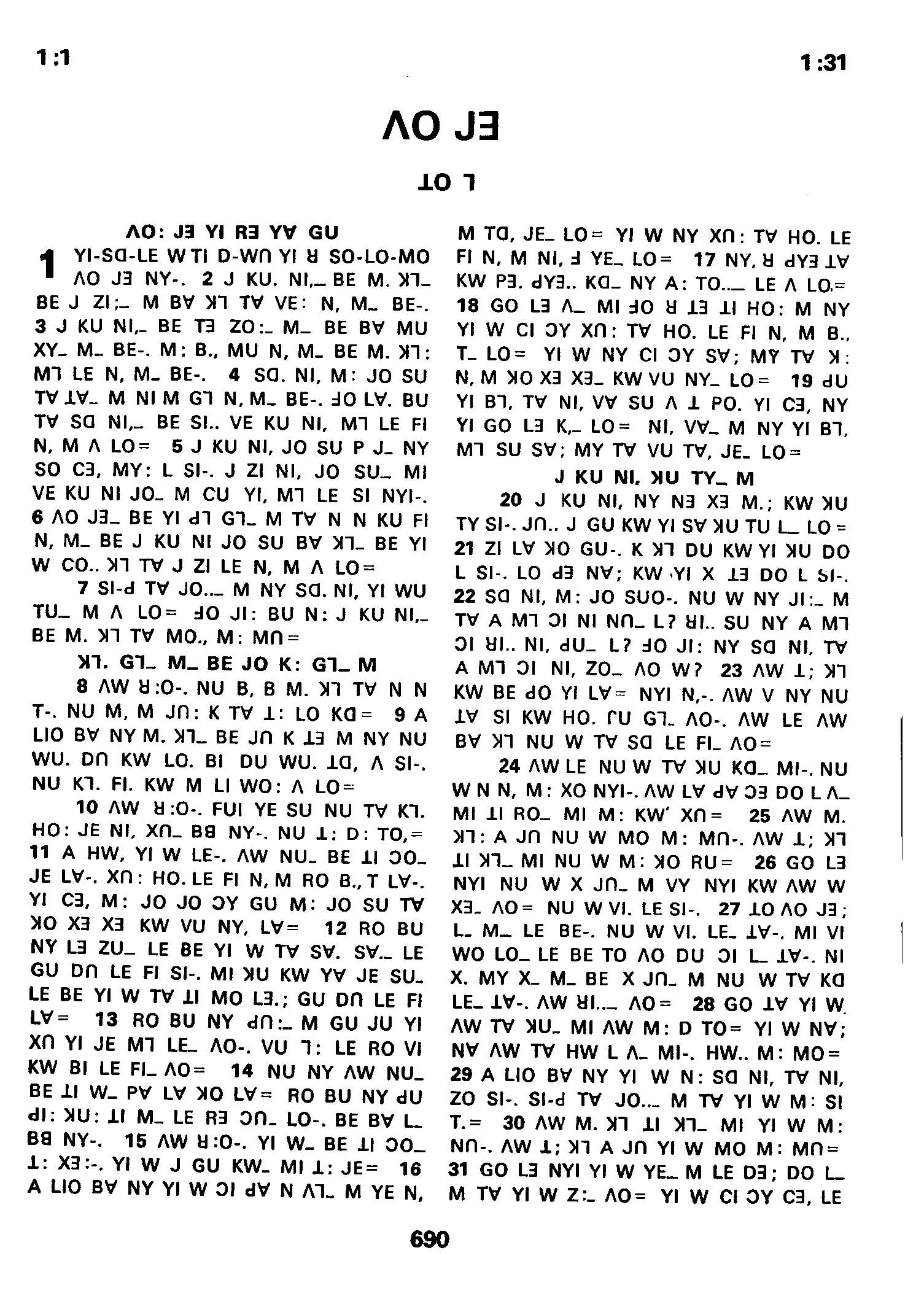 1980年傈僳語聖經全書 箴言 1 章 1 節到 1 章 31 節