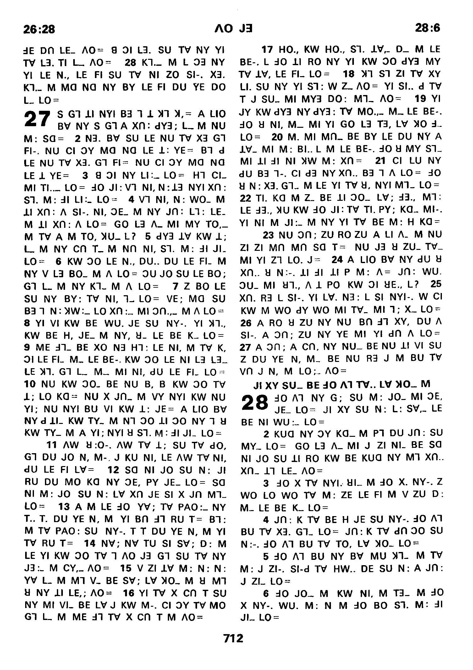1980年傈僳語聖經全書 箴言 26 章 28 節到 28 章 6 節