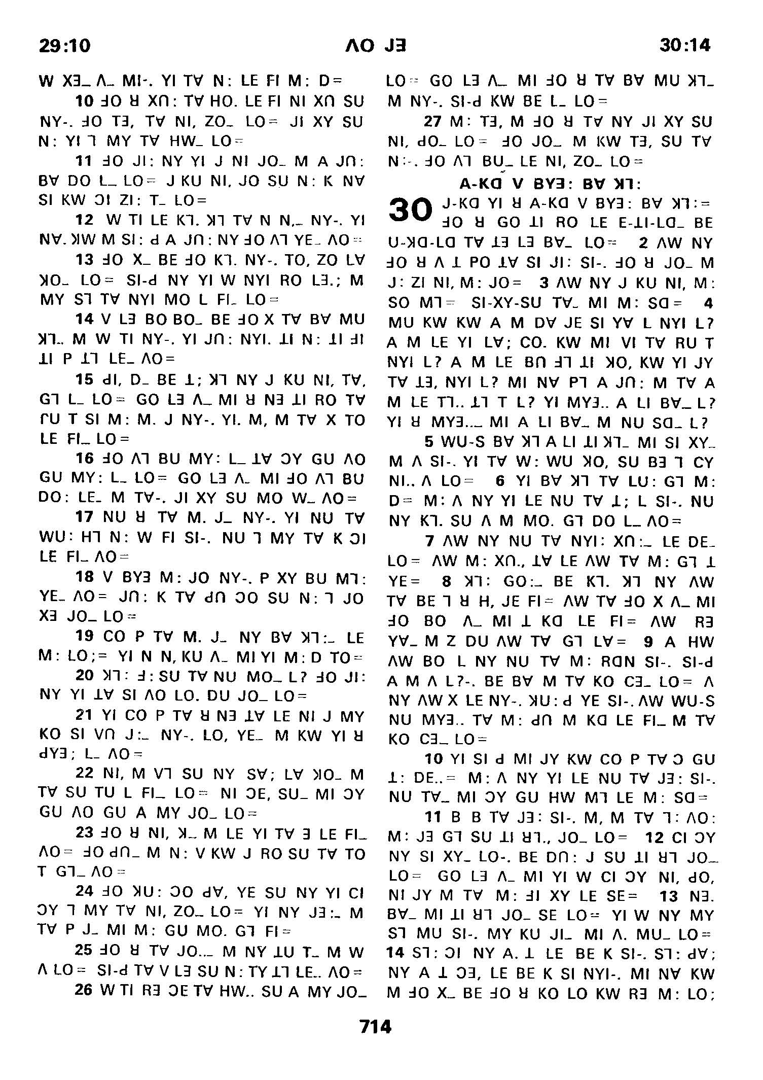 1980年傈僳語聖經全書 箴言 29 章 10 節到 30 章 14 節