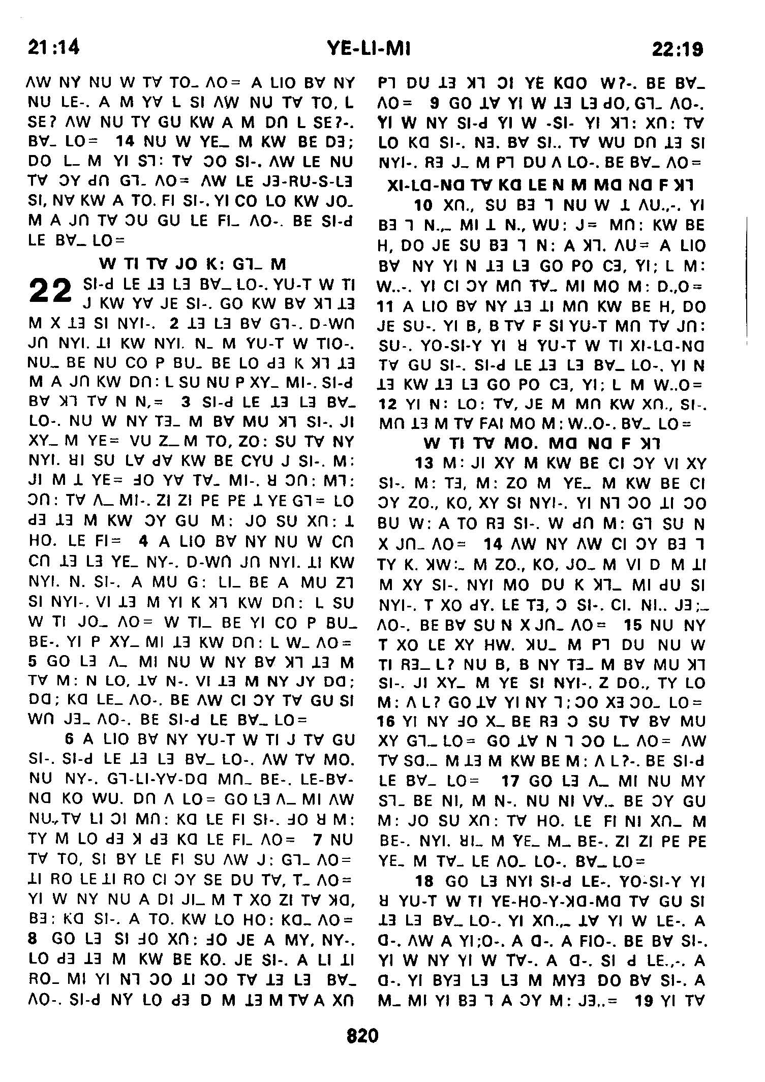 1980年傈僳語聖經全書 耶利米書 21 章 14 節到 22 章 19 節