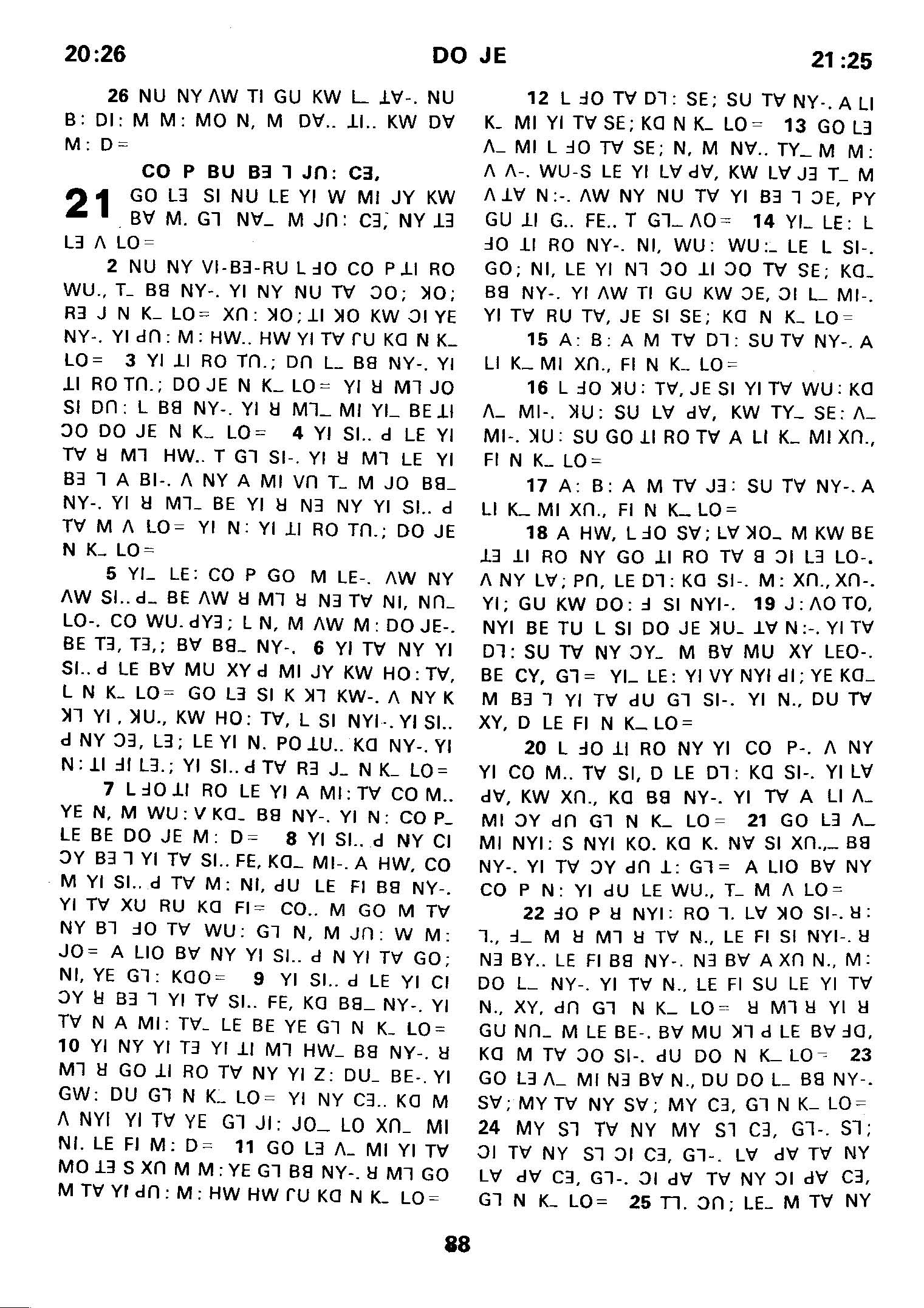 1980年傈僳語聖經全書 出埃及記 20 章 26 節到 21 章 25 節