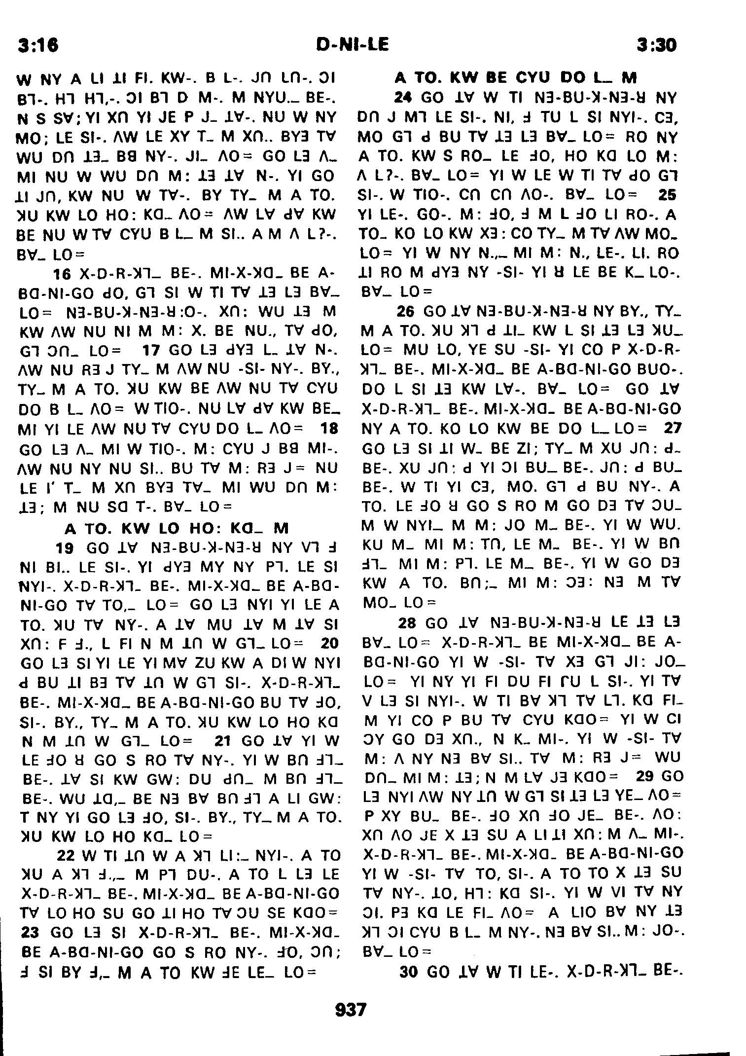 1980年傈僳語聖經全書 但以理書 3 章 16 節到 3 章 30 節