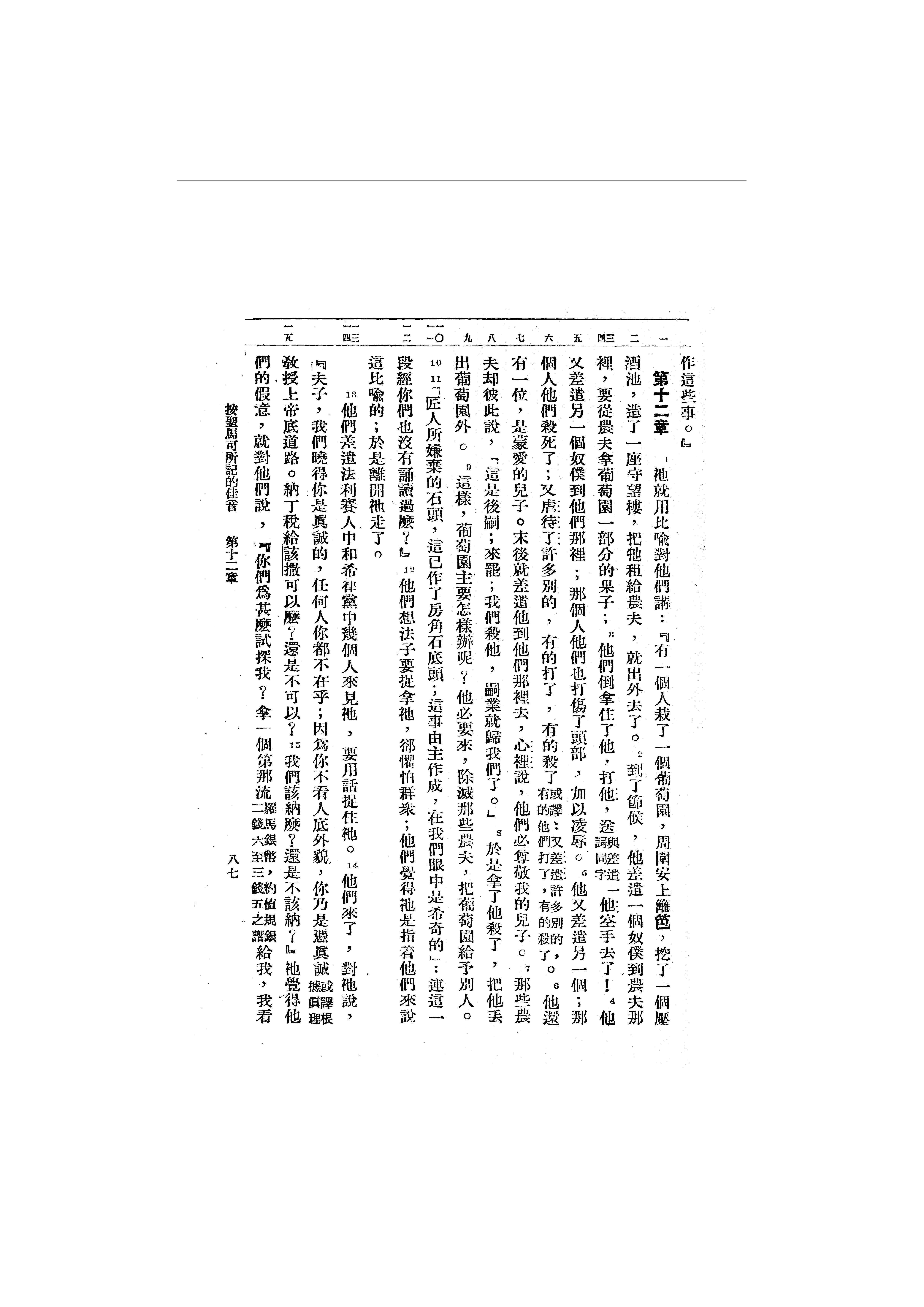 1946年呂振中譯新約初稿 馬可福音 12 章 1 節到 12 章 15 節