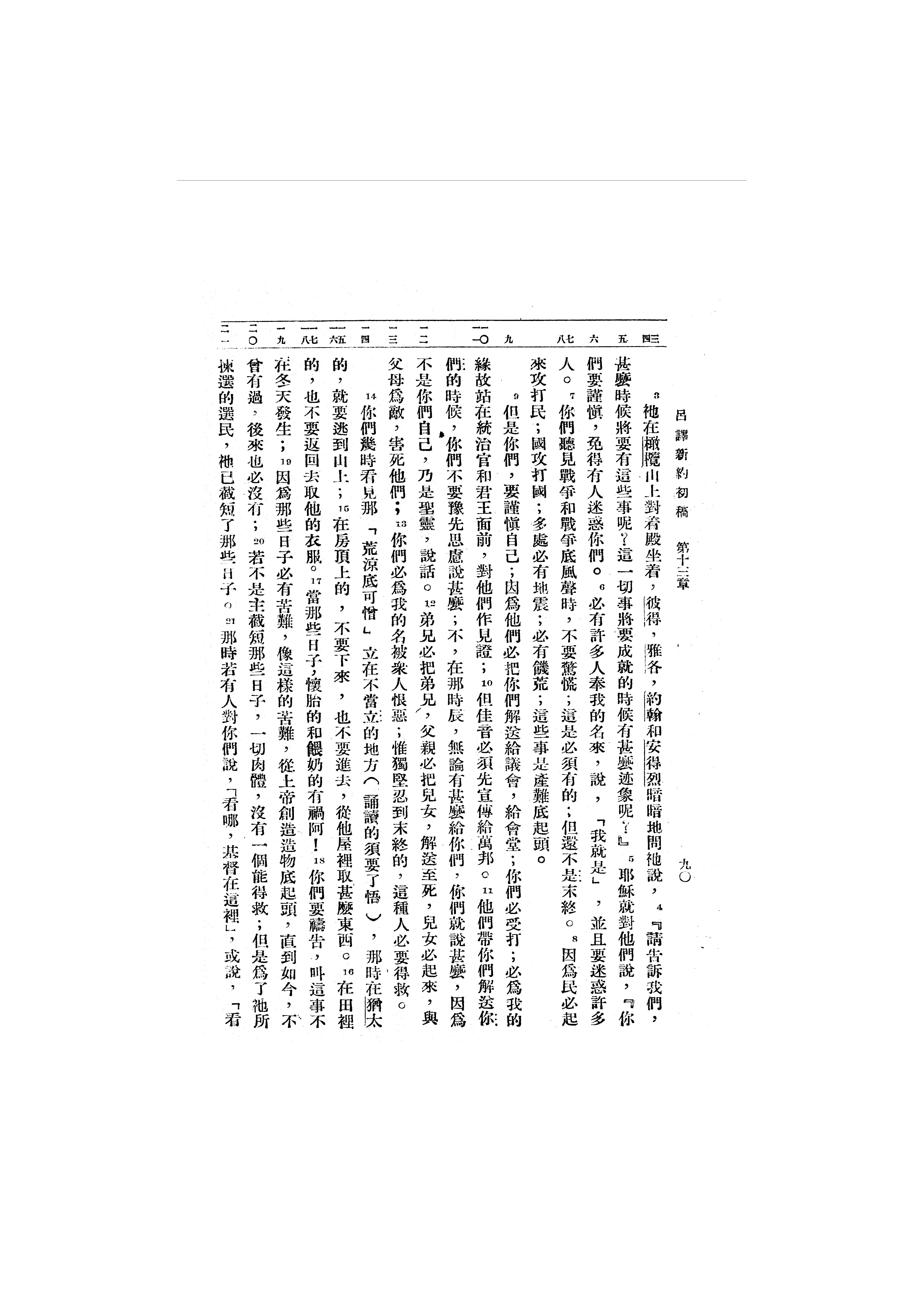 1946年呂振中譯新約初稿 馬可福音 13 章 3 節到 13 章 21 節