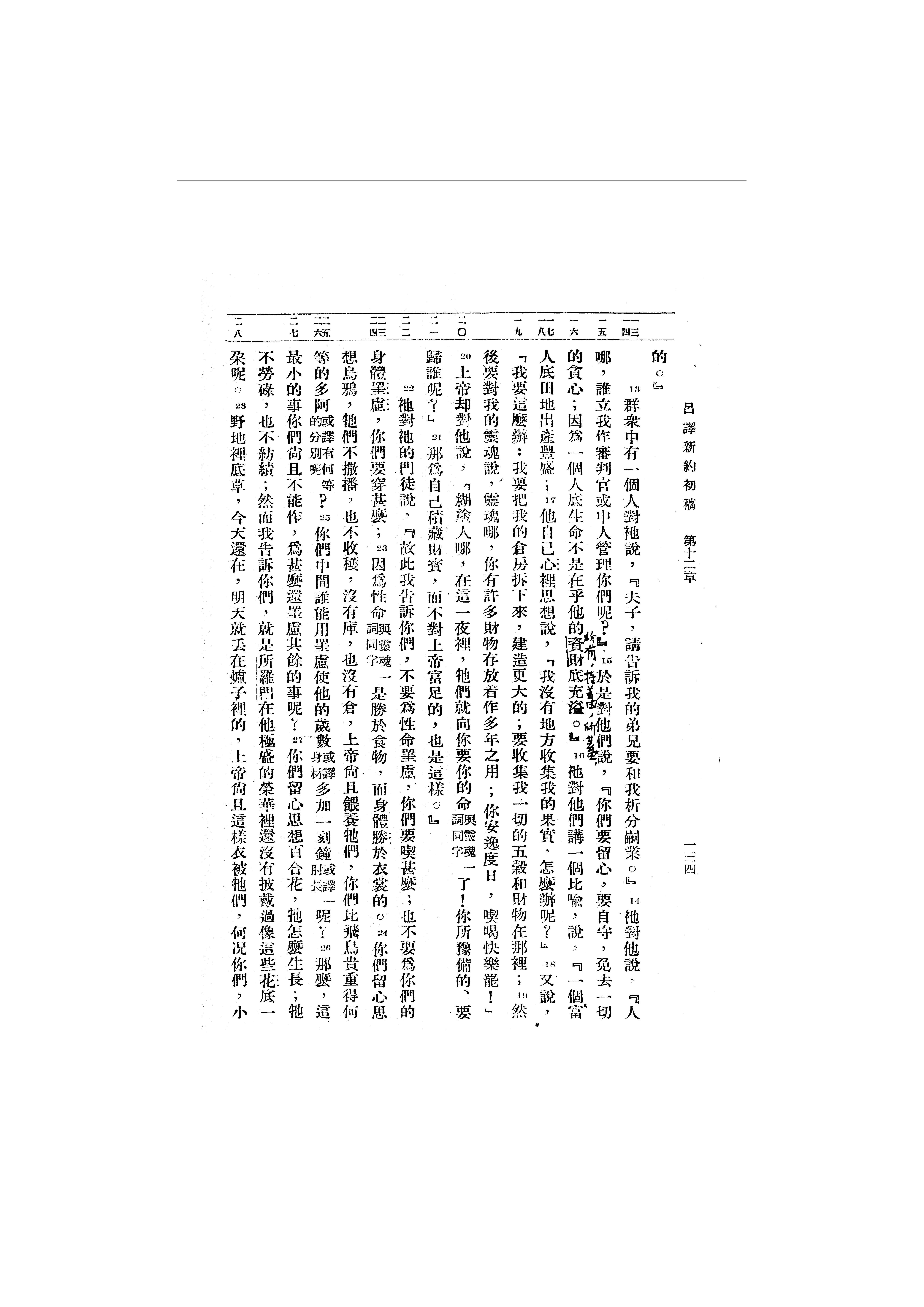 1946年呂振中譯新約初稿 路加福音 12 章 13 節到 12 章 28 節