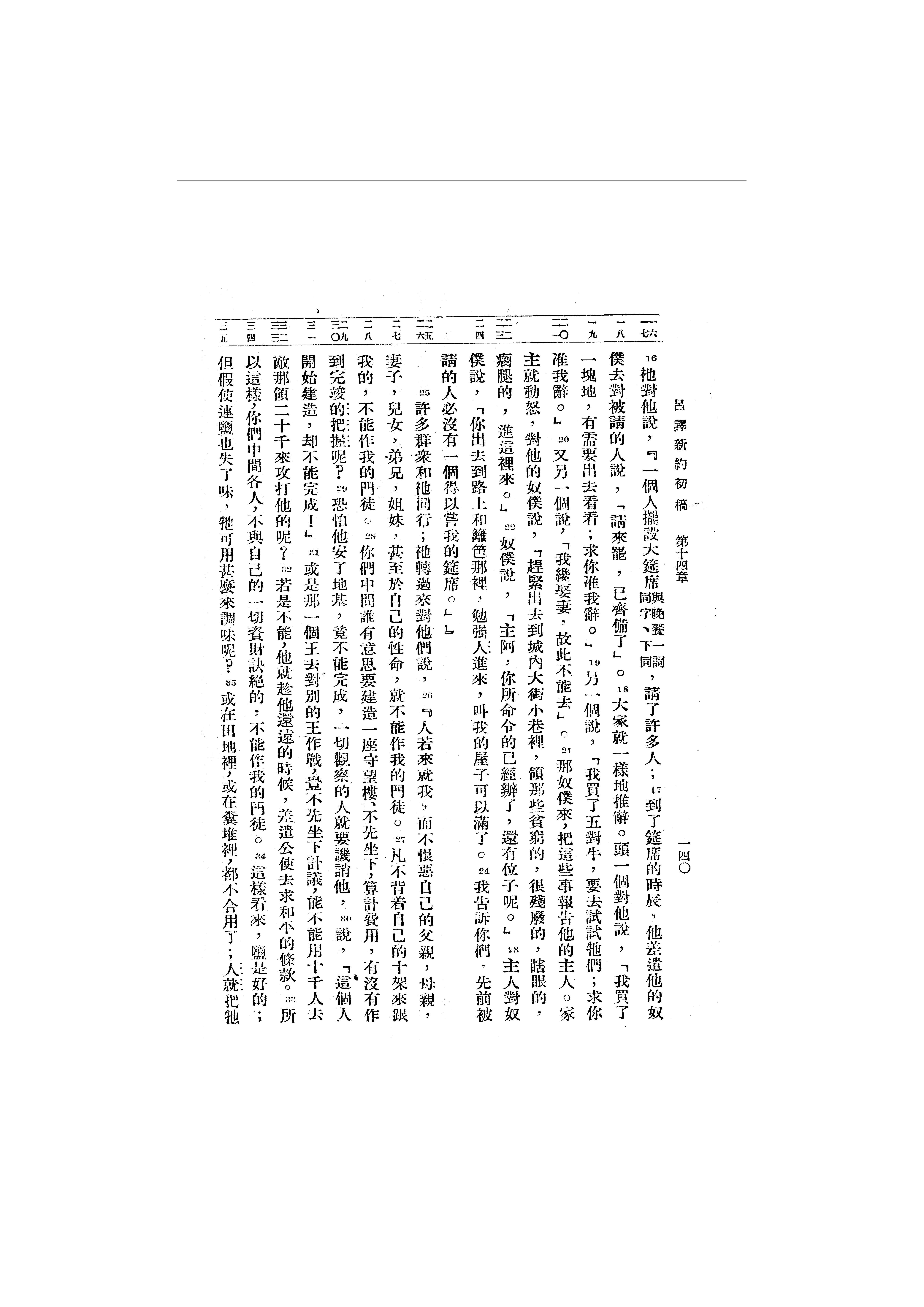 1946年呂振中譯新約初稿 路加福音 14 章 16 節到 14 章 35 節