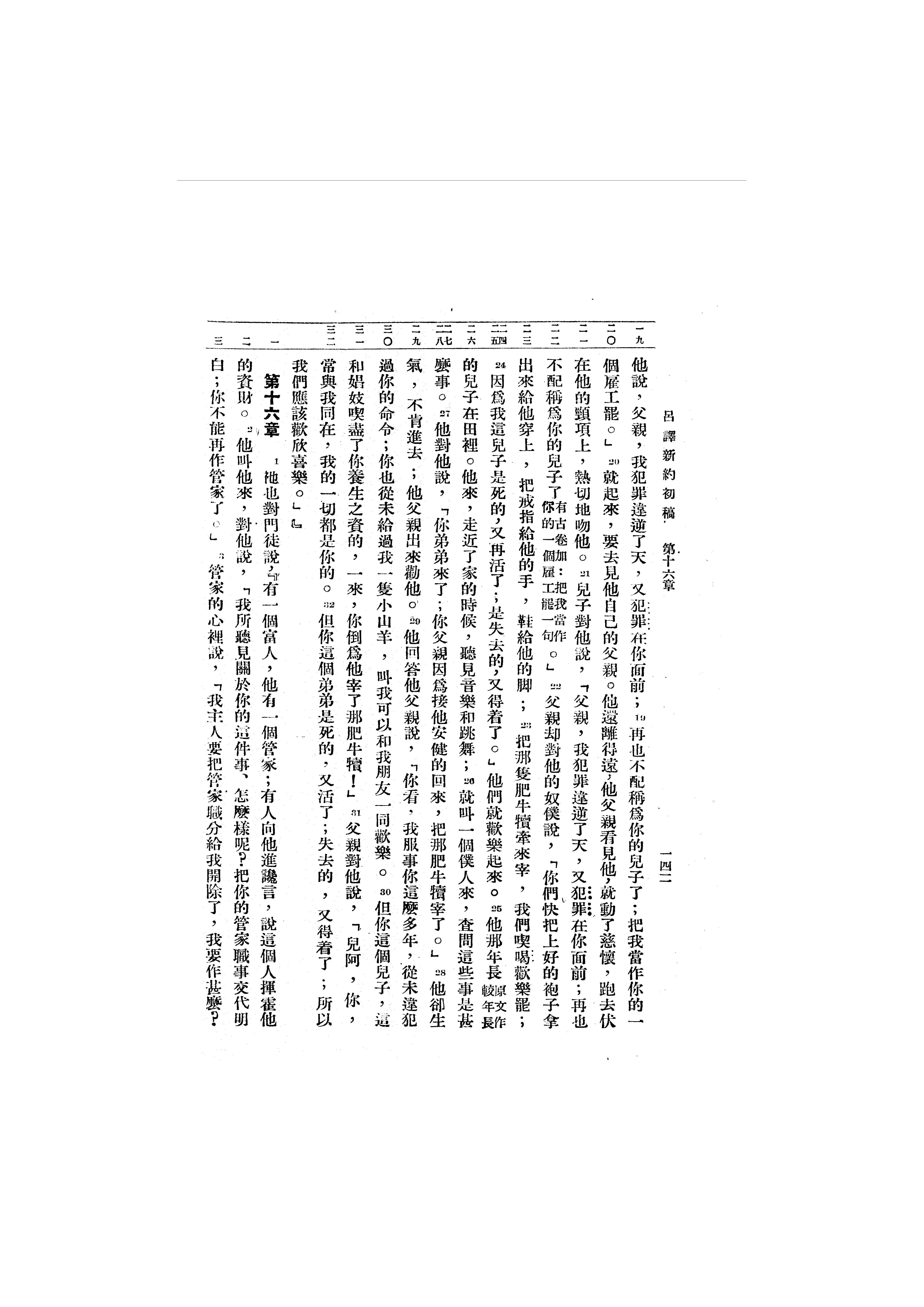 1946年呂振中譯新約初稿 路加福音 15 章 19 節到 16 章 3 節