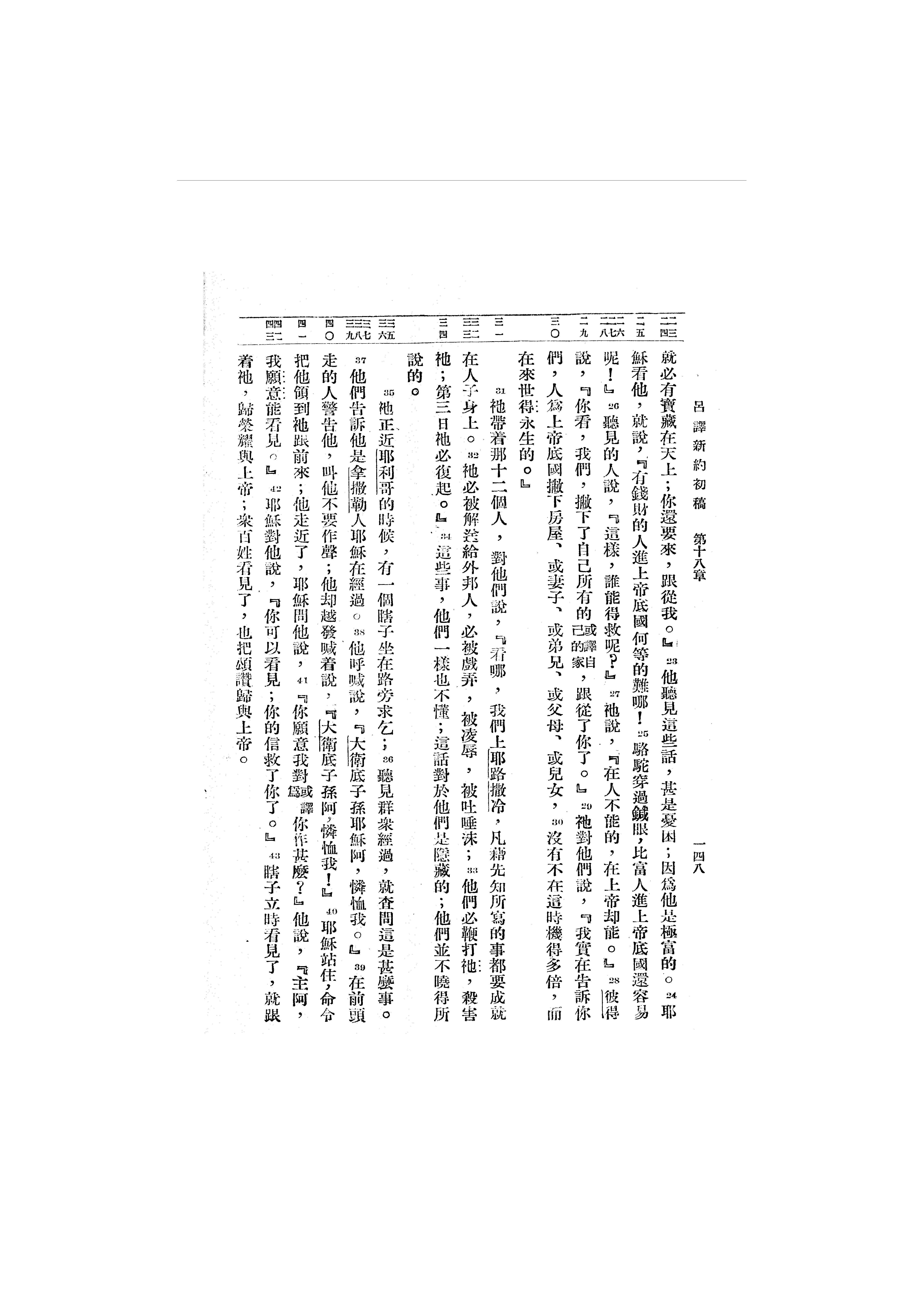 1946年呂振中譯新約初稿 路加福音 18 章 23 節到 18 章 43 節