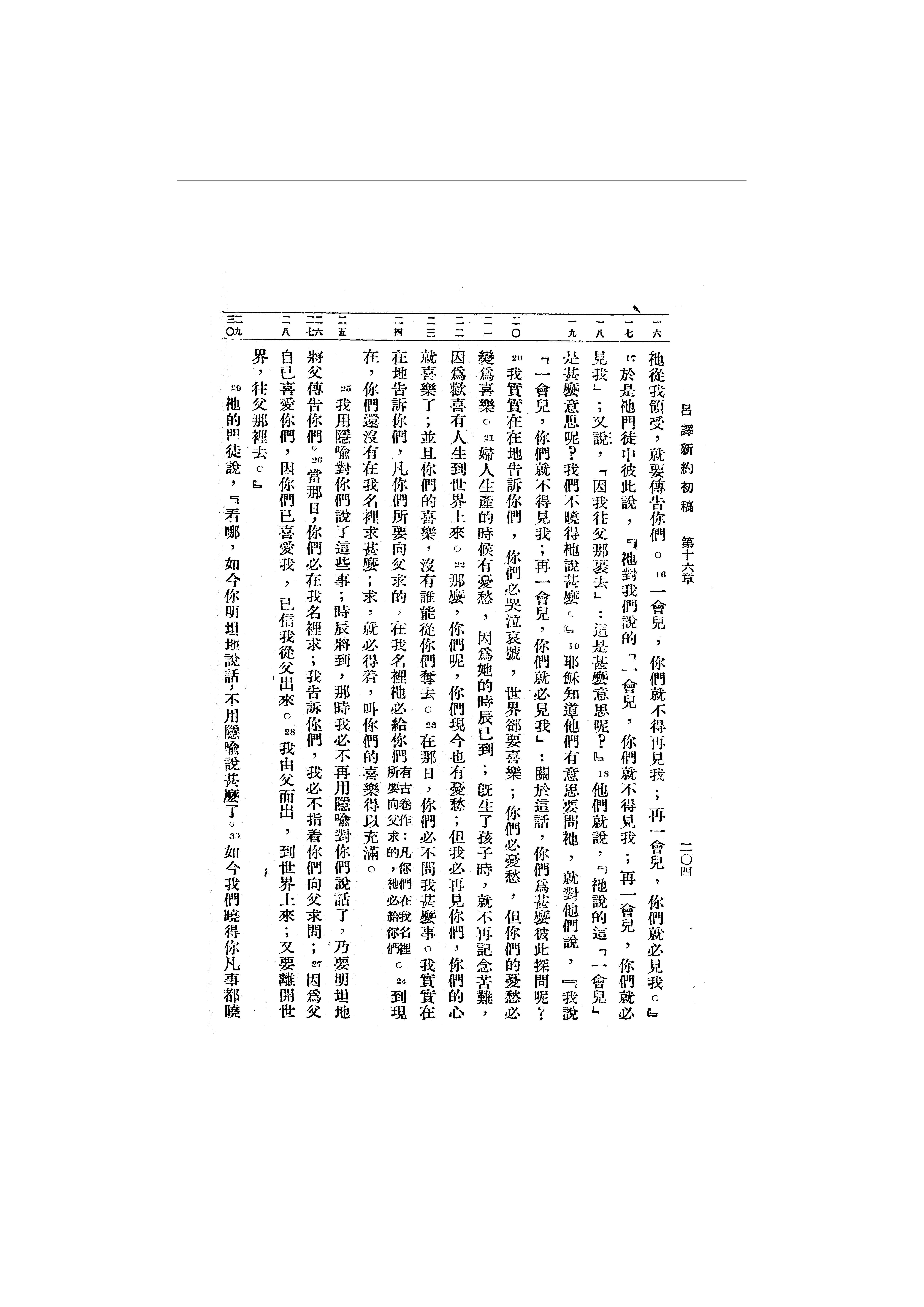 1946年呂振中譯新約初稿 約翰福音 16 章 16 節到 16 章 30 節