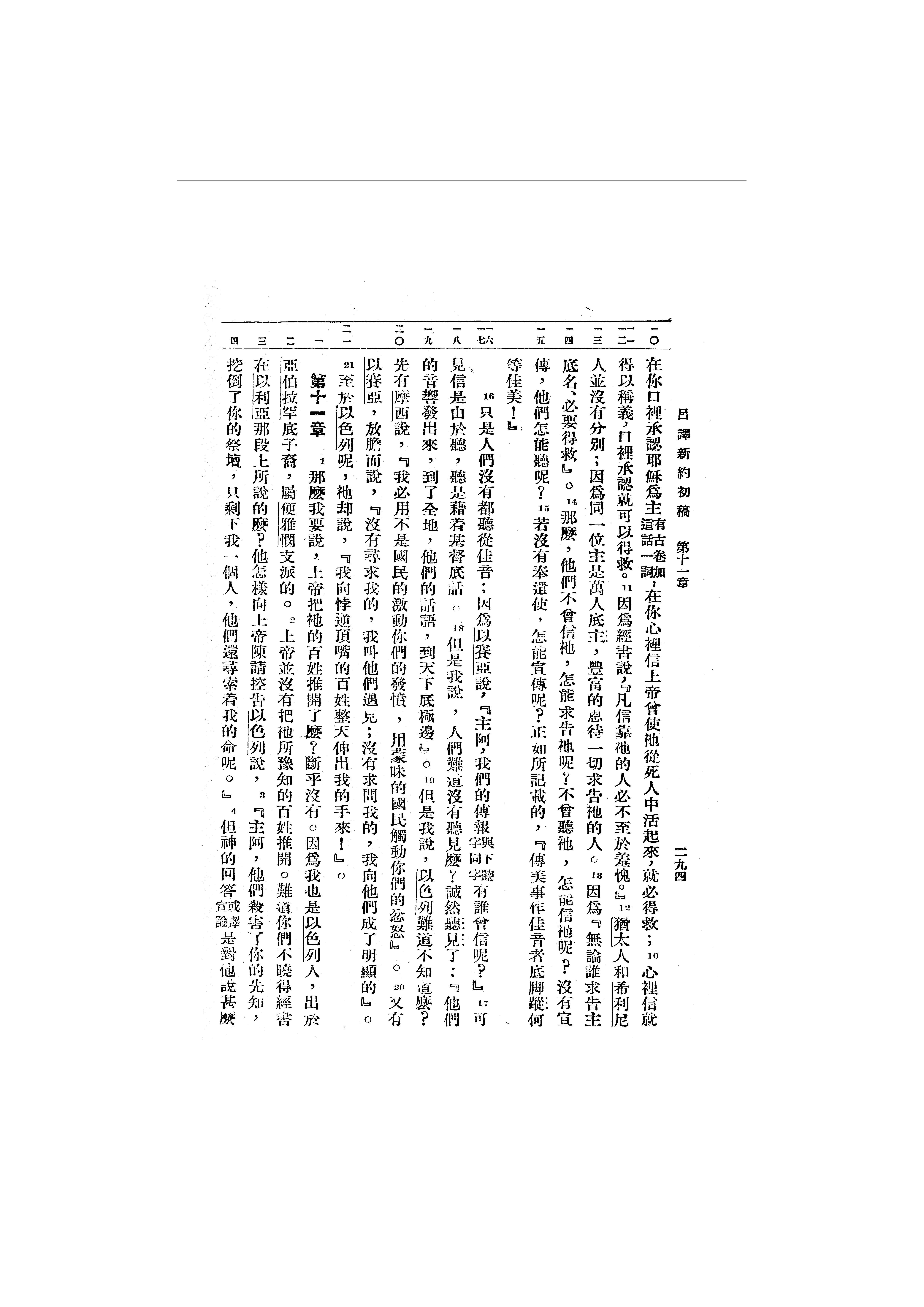 1946年呂振中譯新約初稿 羅馬書 10 章 10 節到 11 章 4 節