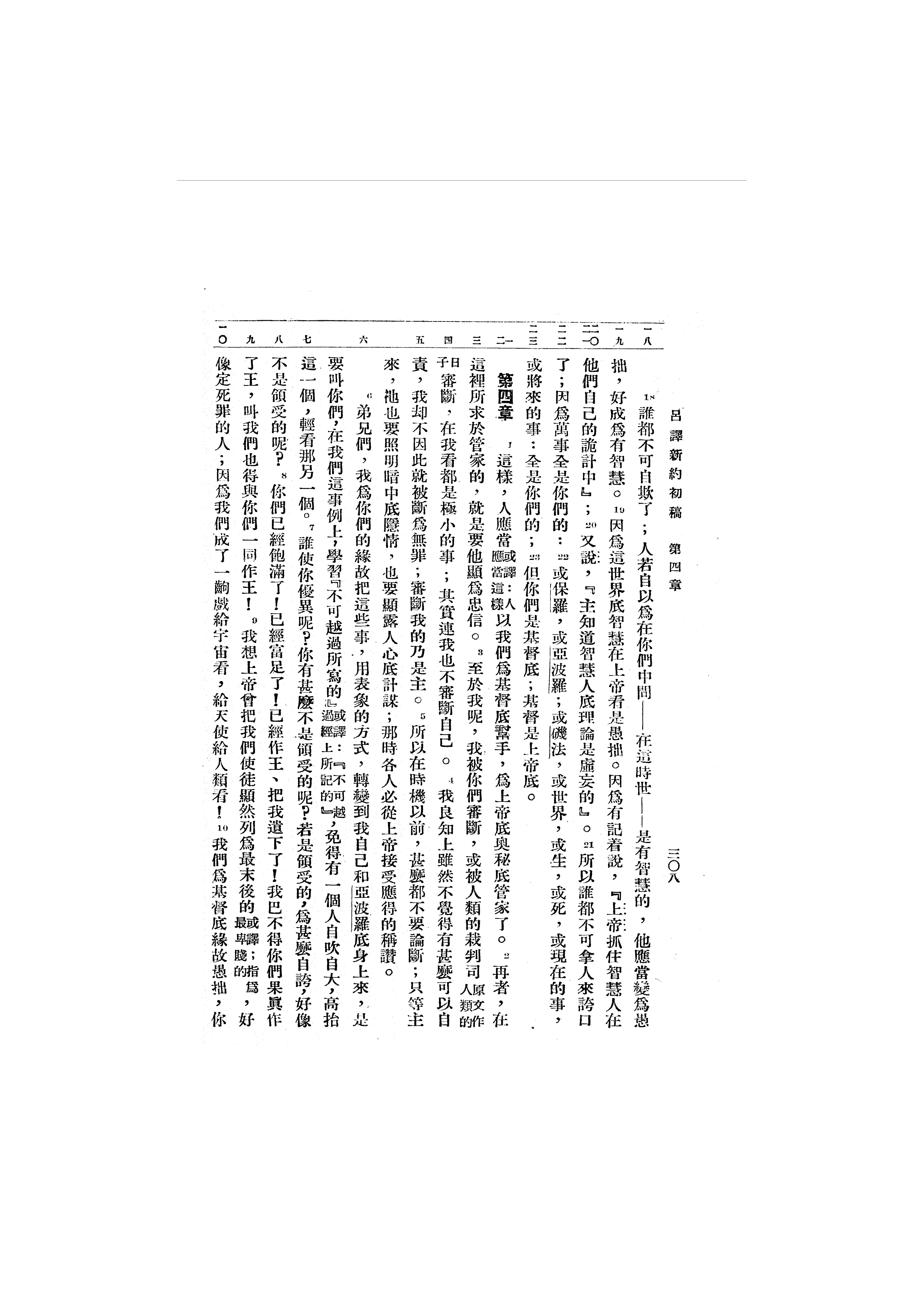 1946年呂振中譯新約初稿 哥林多前書 3 章 18 節到 4 章 10 節