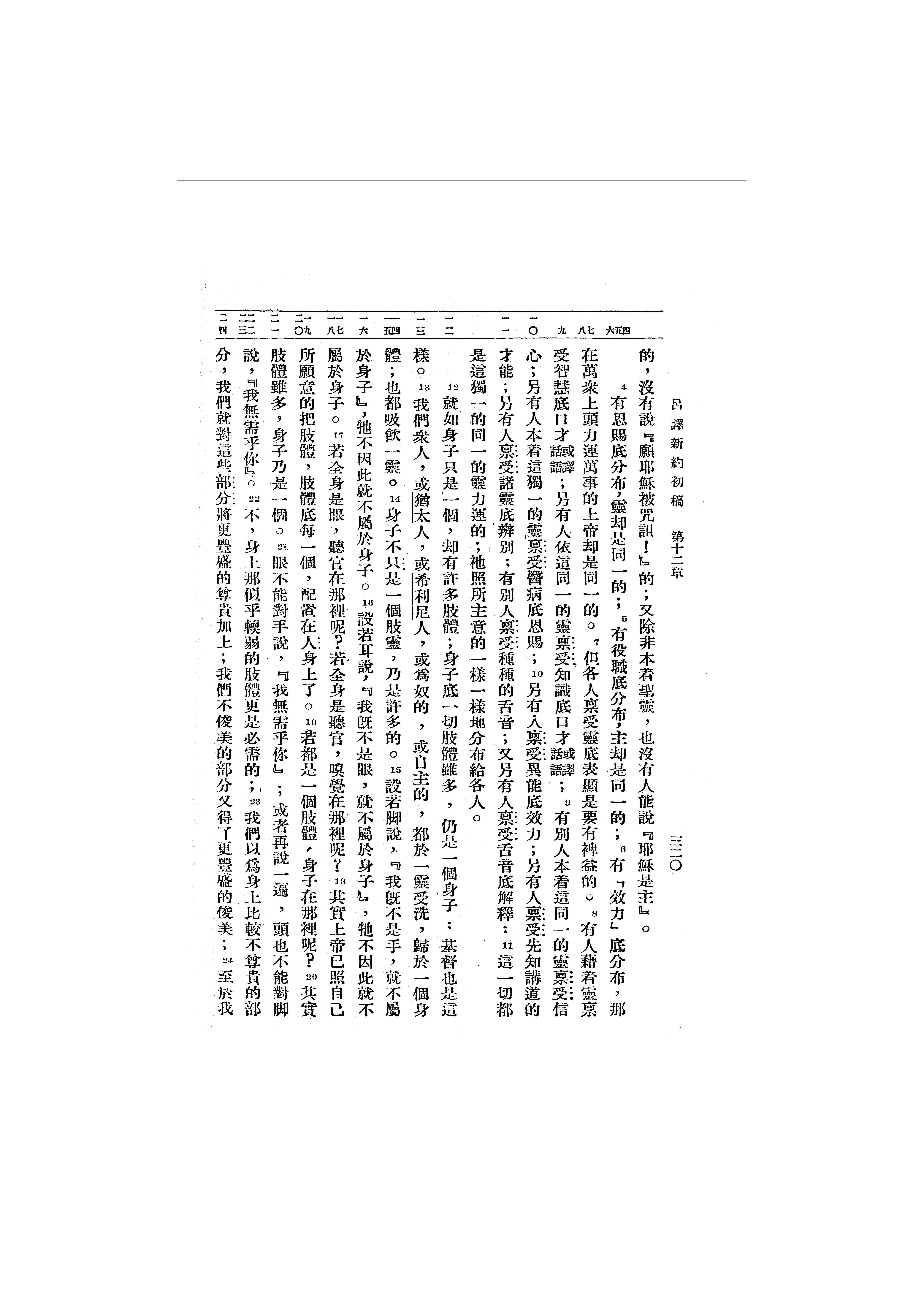 1946年呂振中譯新約初稿 哥林多前書 12 章 4 節到 12 章 24 節