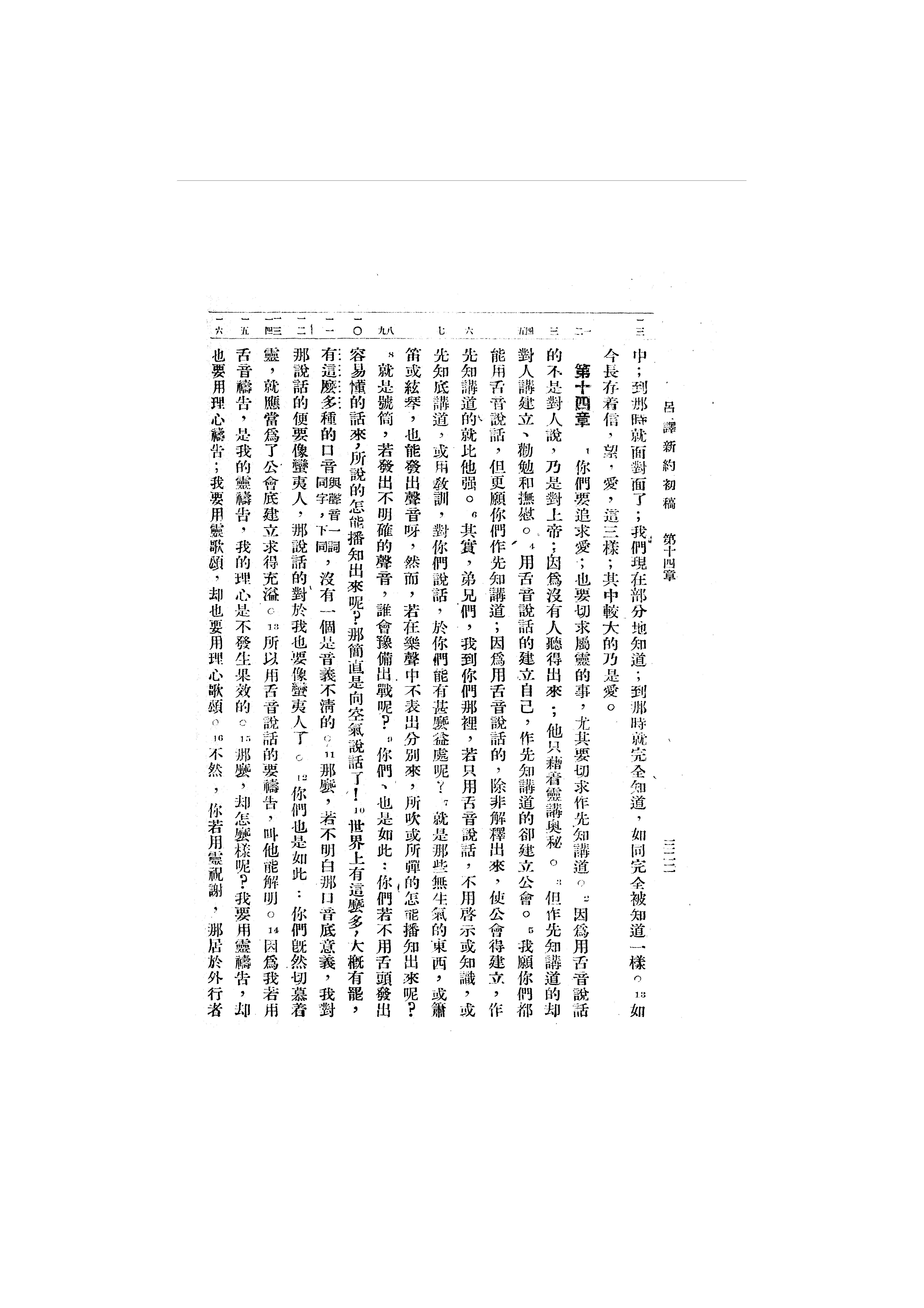 1946年呂振中譯新約初稿 哥林多前書 13 章 13 節到 14 章 16 節