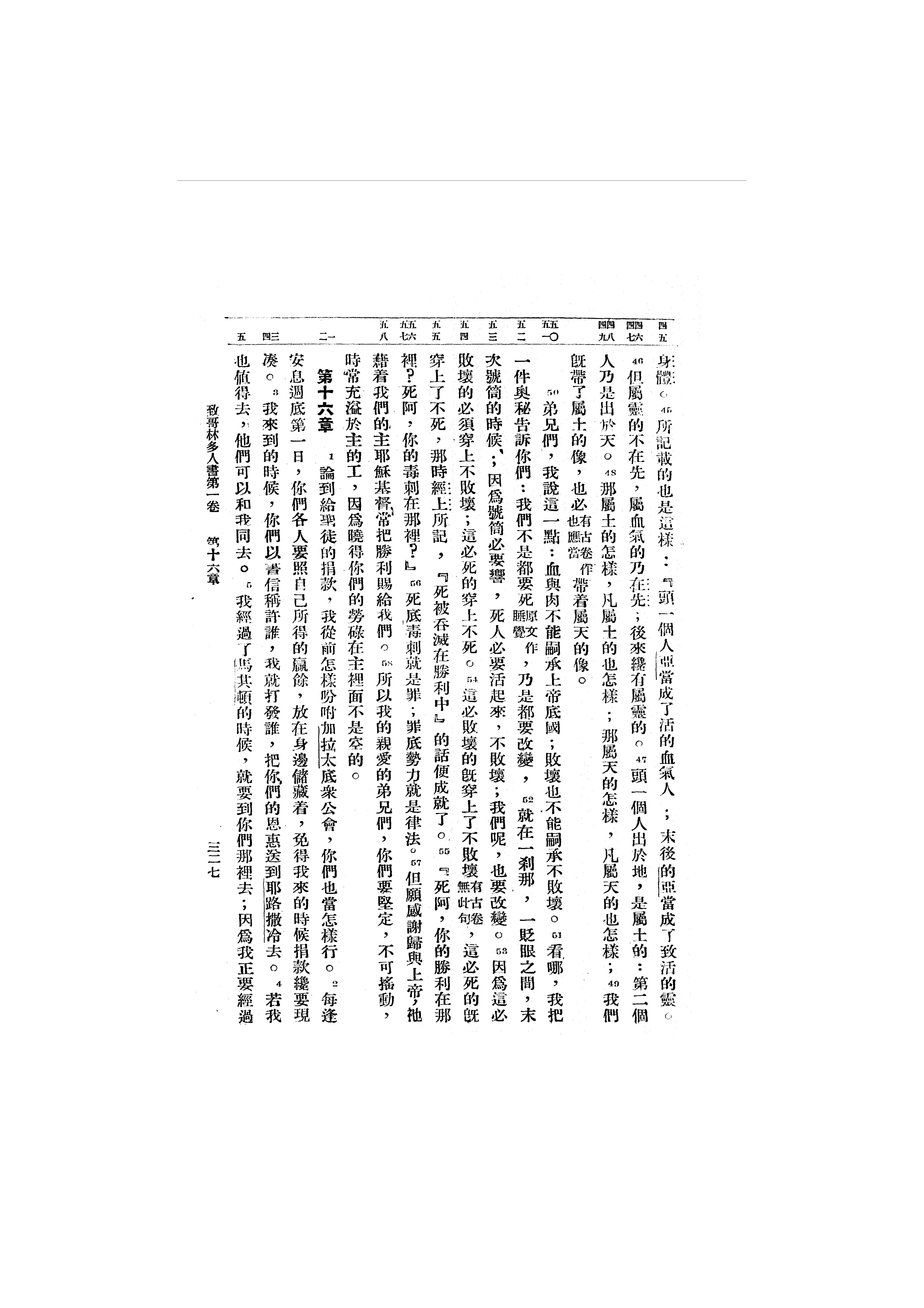 1946年呂振中譯新約初稿 哥林多前書 15 章 45 節到 16 章 5 節