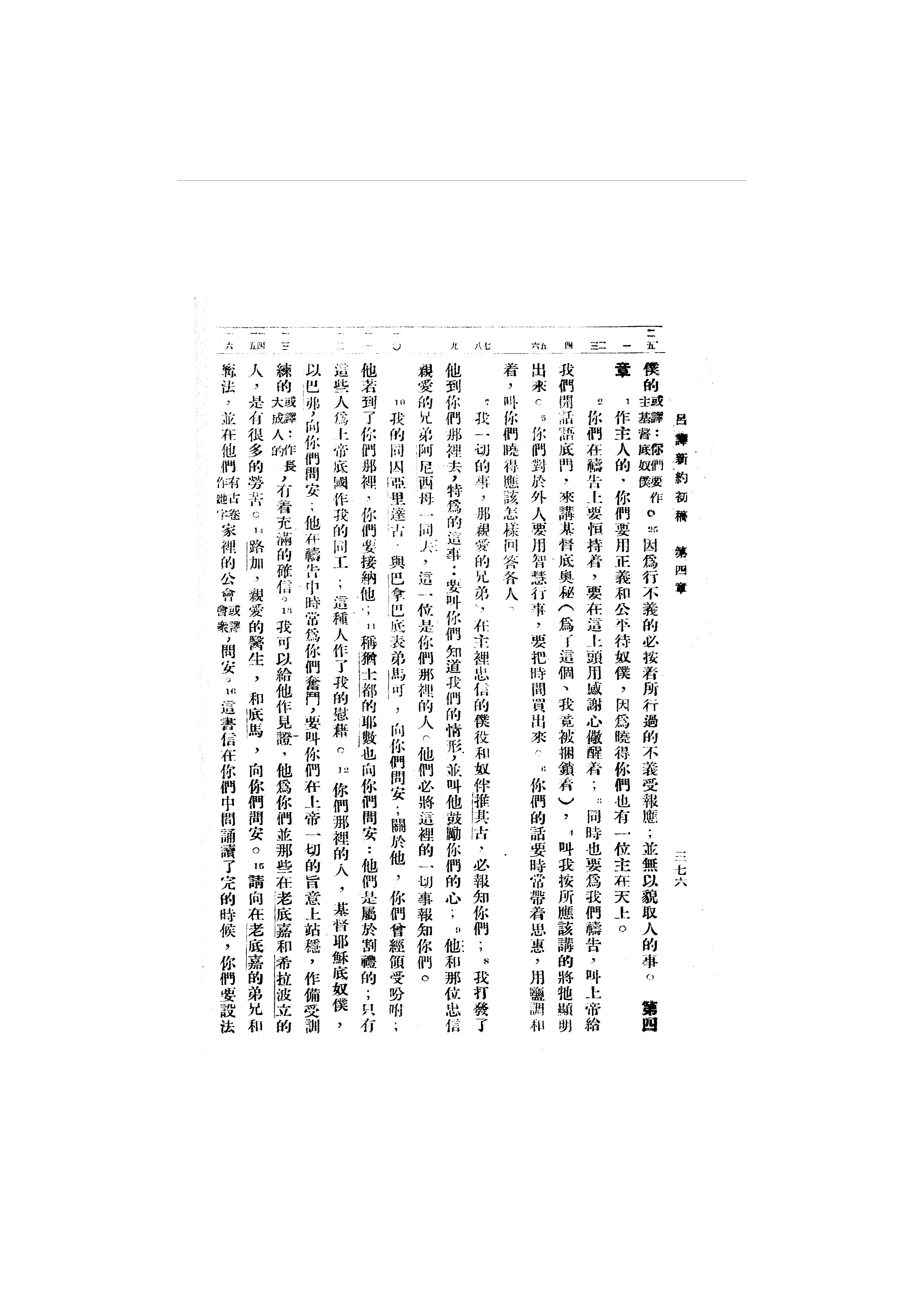 1946年呂振中譯新約初稿 歌羅西書 3 章 25 節到 4 章 16 節