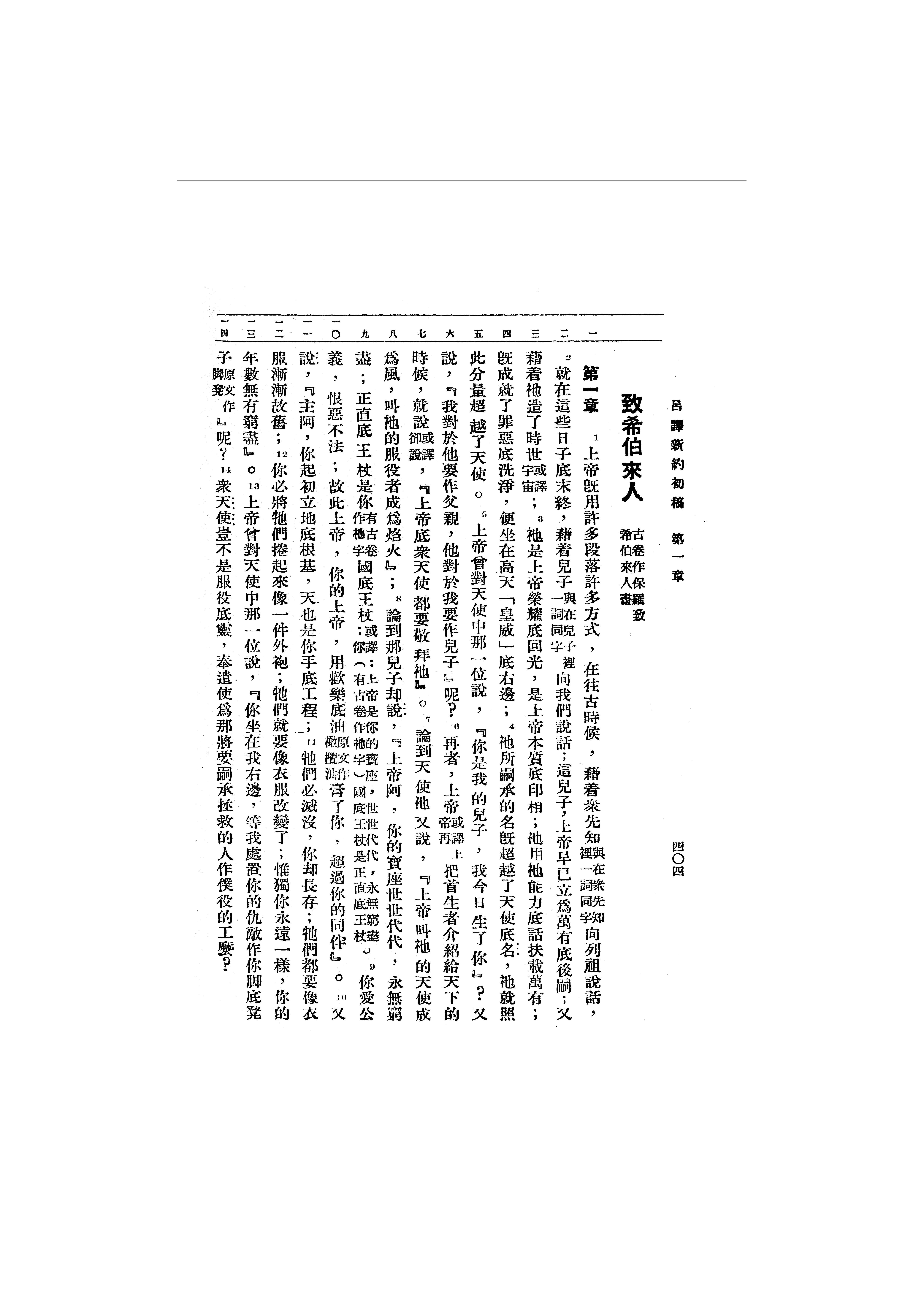 1946年呂振中譯新約初稿 希伯來書 1 章 1 節到 1 章 14 節