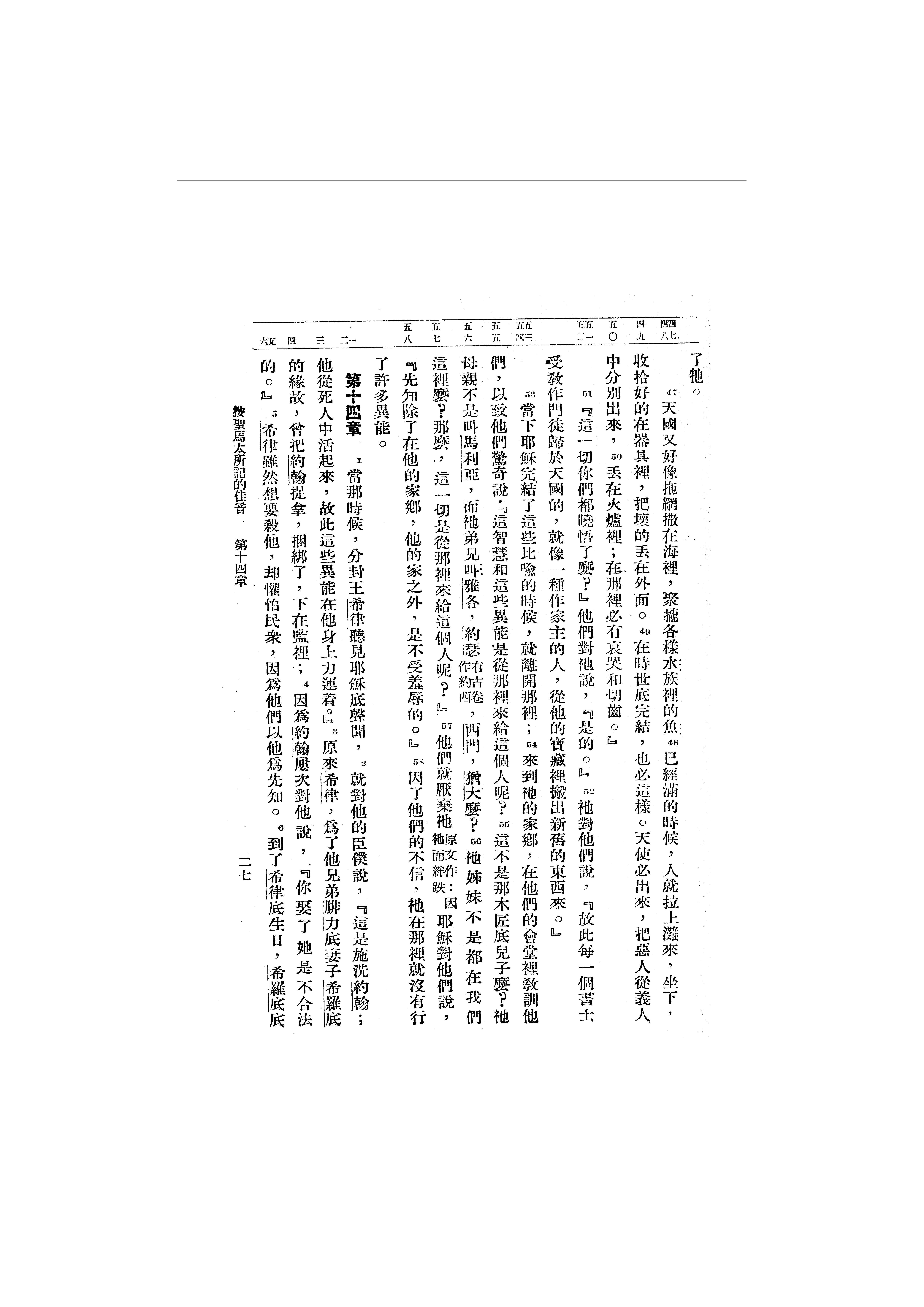 1946年呂振中譯新約初稿 馬太福音 13 章 47 節到 14 章 6 節