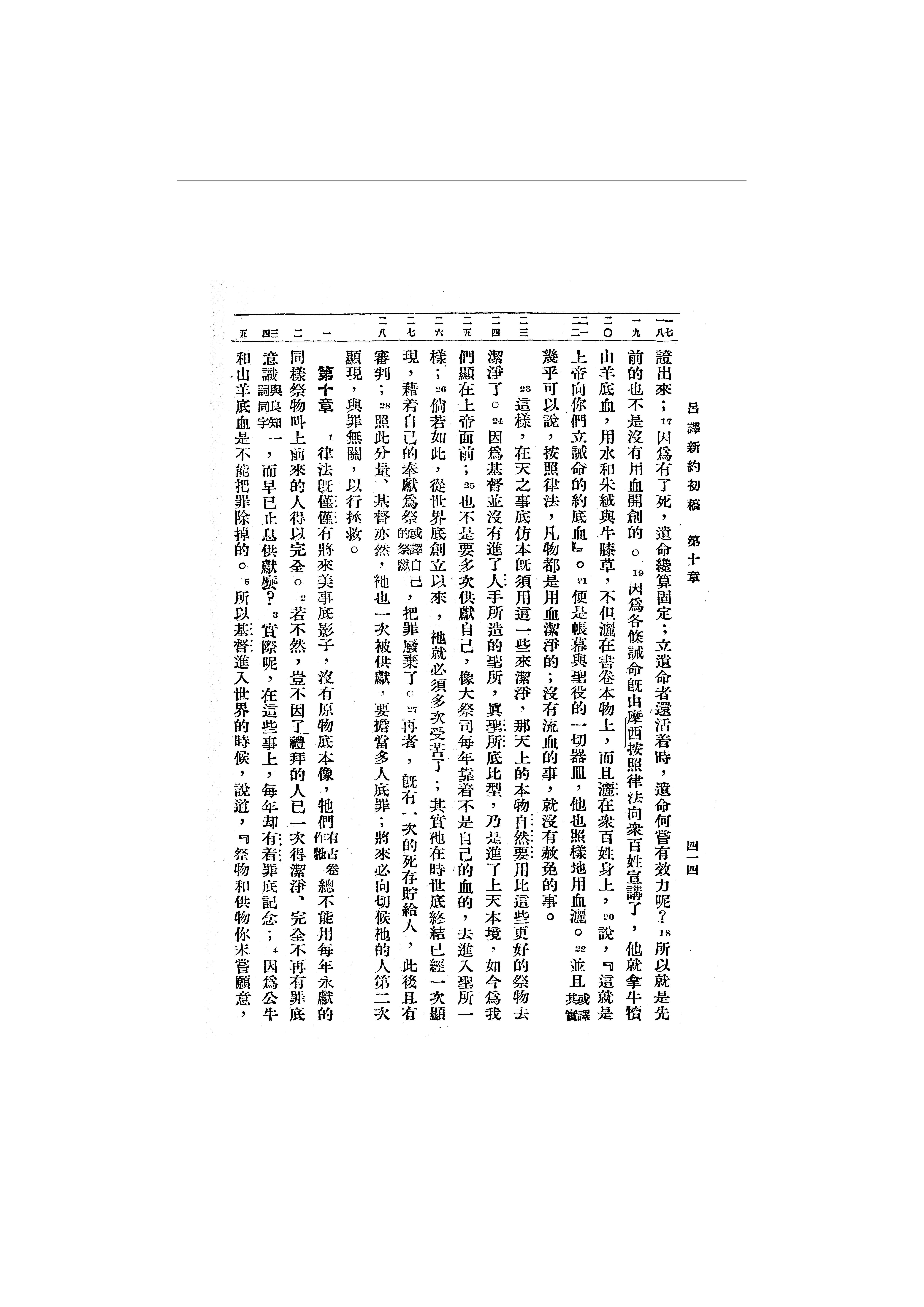 1946年呂振中譯新約初稿 希伯來書 9 章 17 節到 10 章 5 節