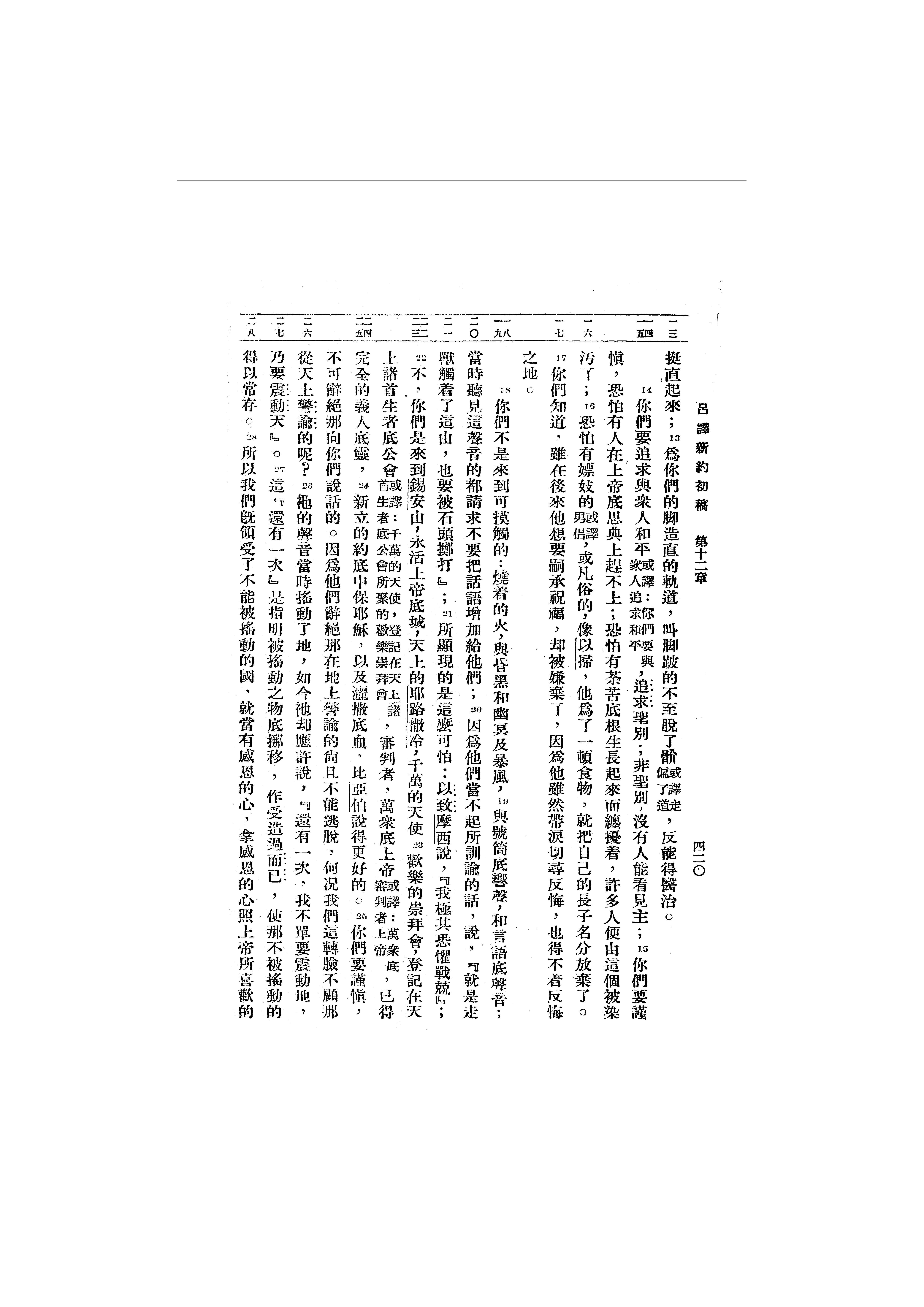 1946年呂振中譯新約初稿 希伯來書 12 章 13 節到 12 章 28 節