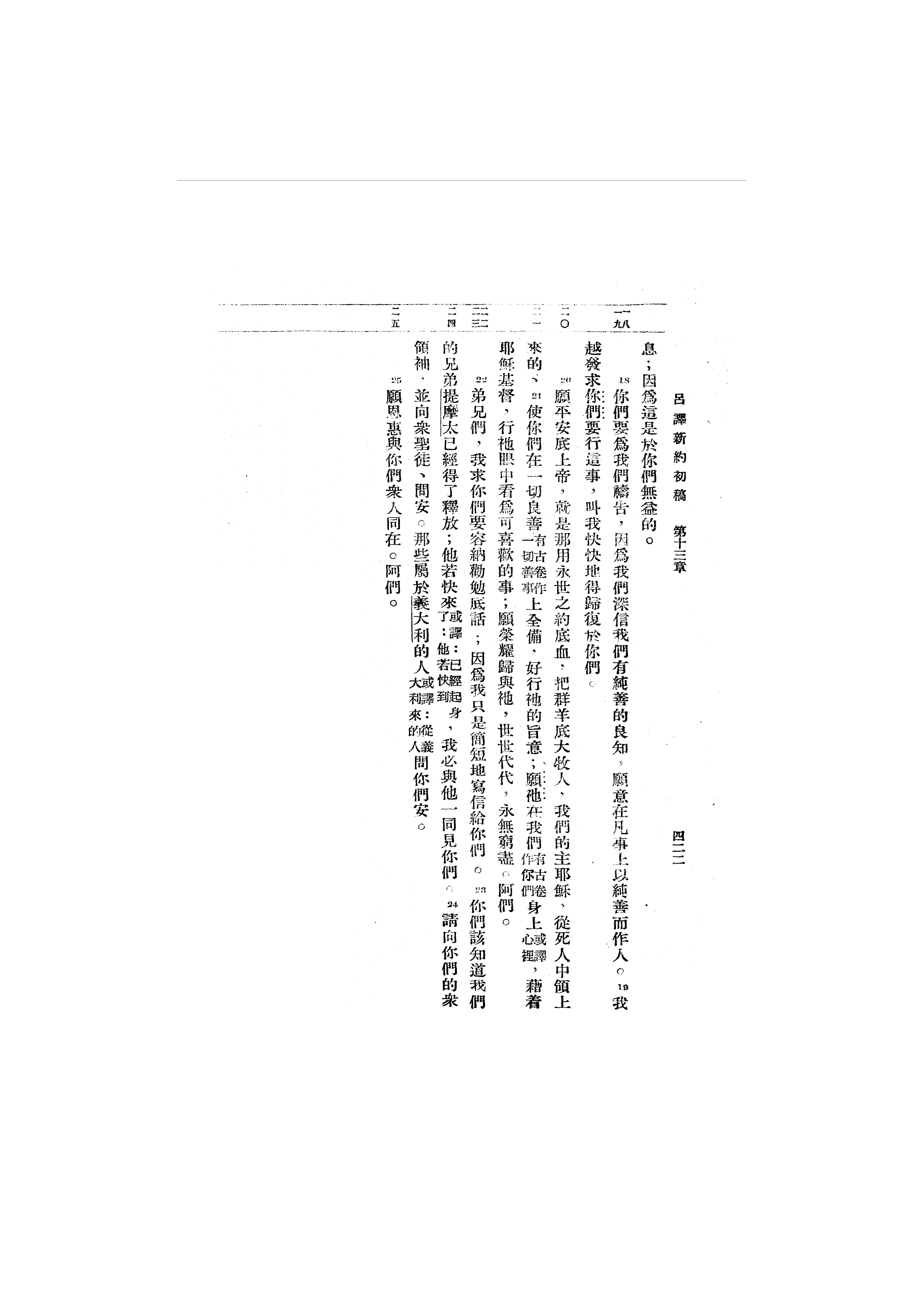 1946年呂振中譯新約初稿 希伯來書 13 章 18 節到 13 章 25 節