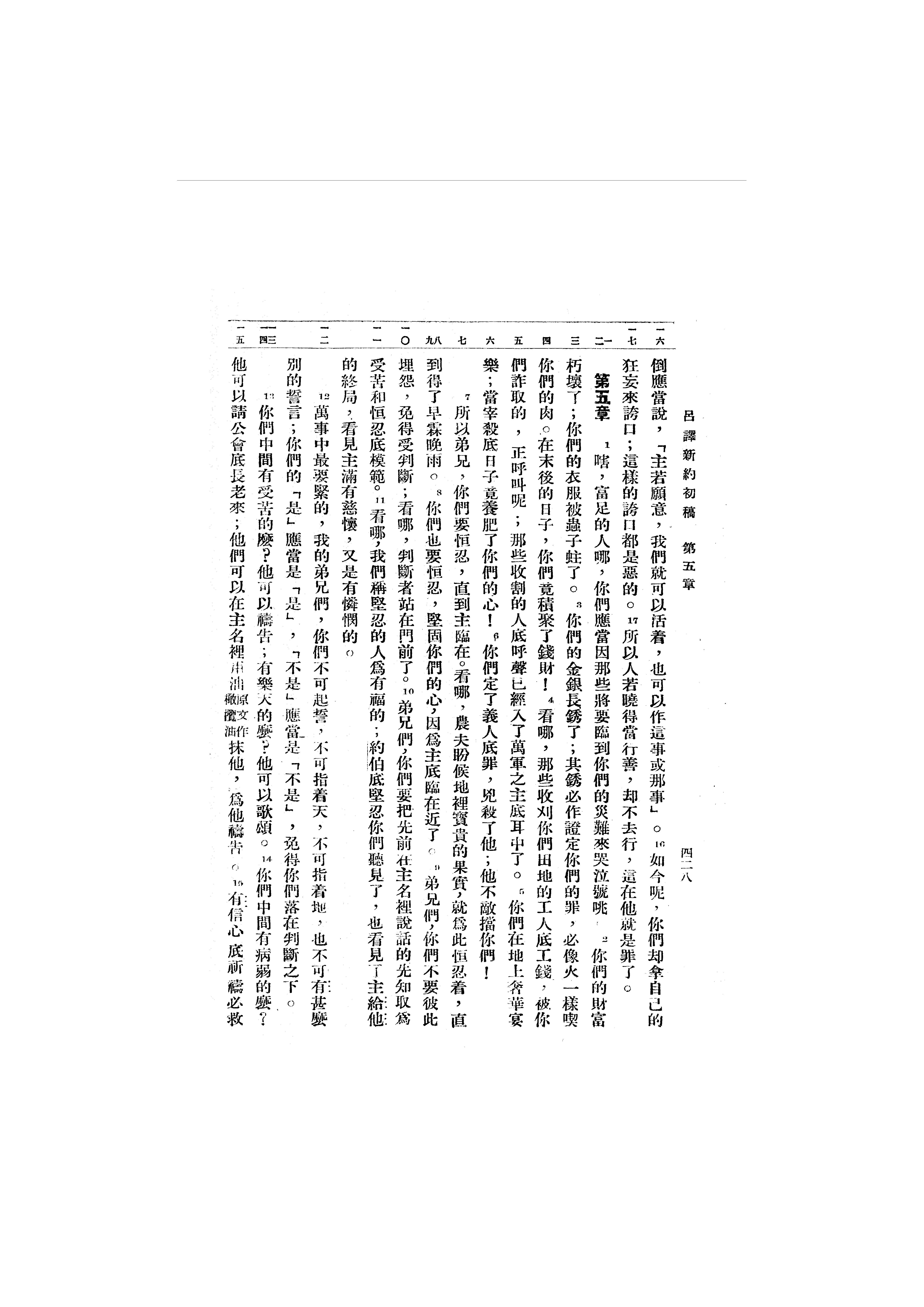 1946年呂振中譯新約初稿 雅各書 4 章 16 節到 5 章 15 節