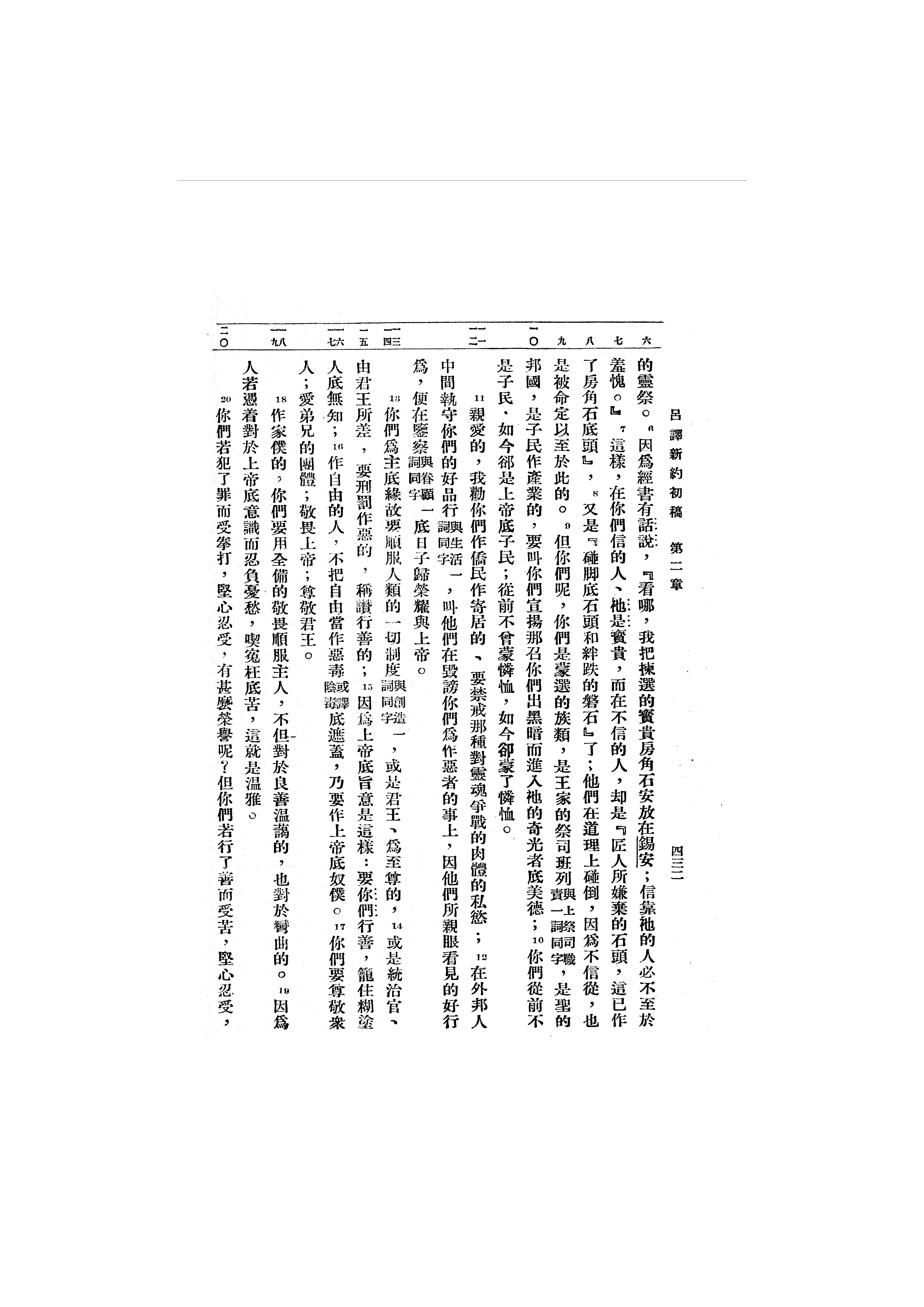 1946年呂振中譯新約初稿 彼得前書 2 章 6 節到 2 章 20 節