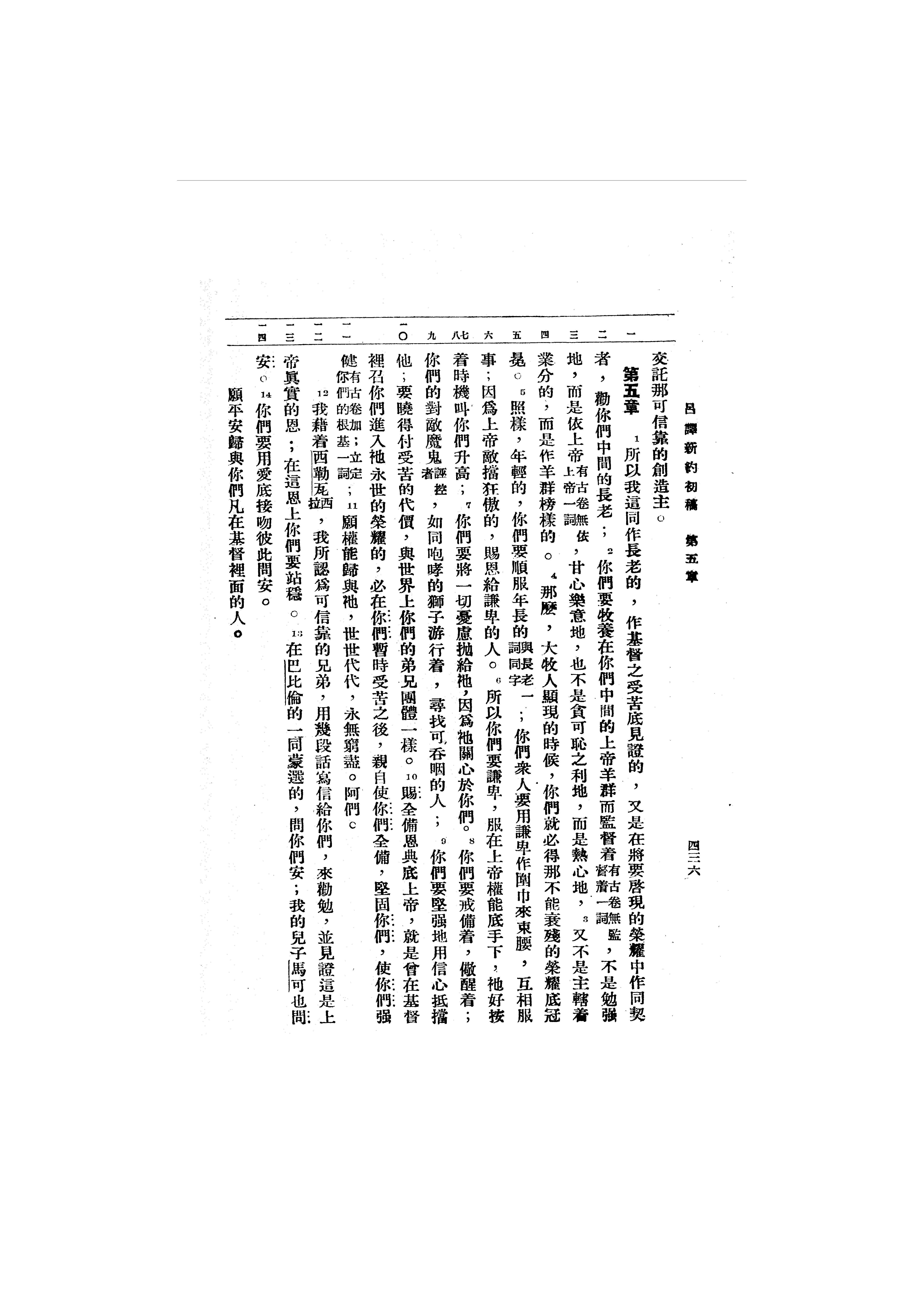 1946年呂振中譯新約初稿 彼得前書 5 章 1 節到 5 章 14 節