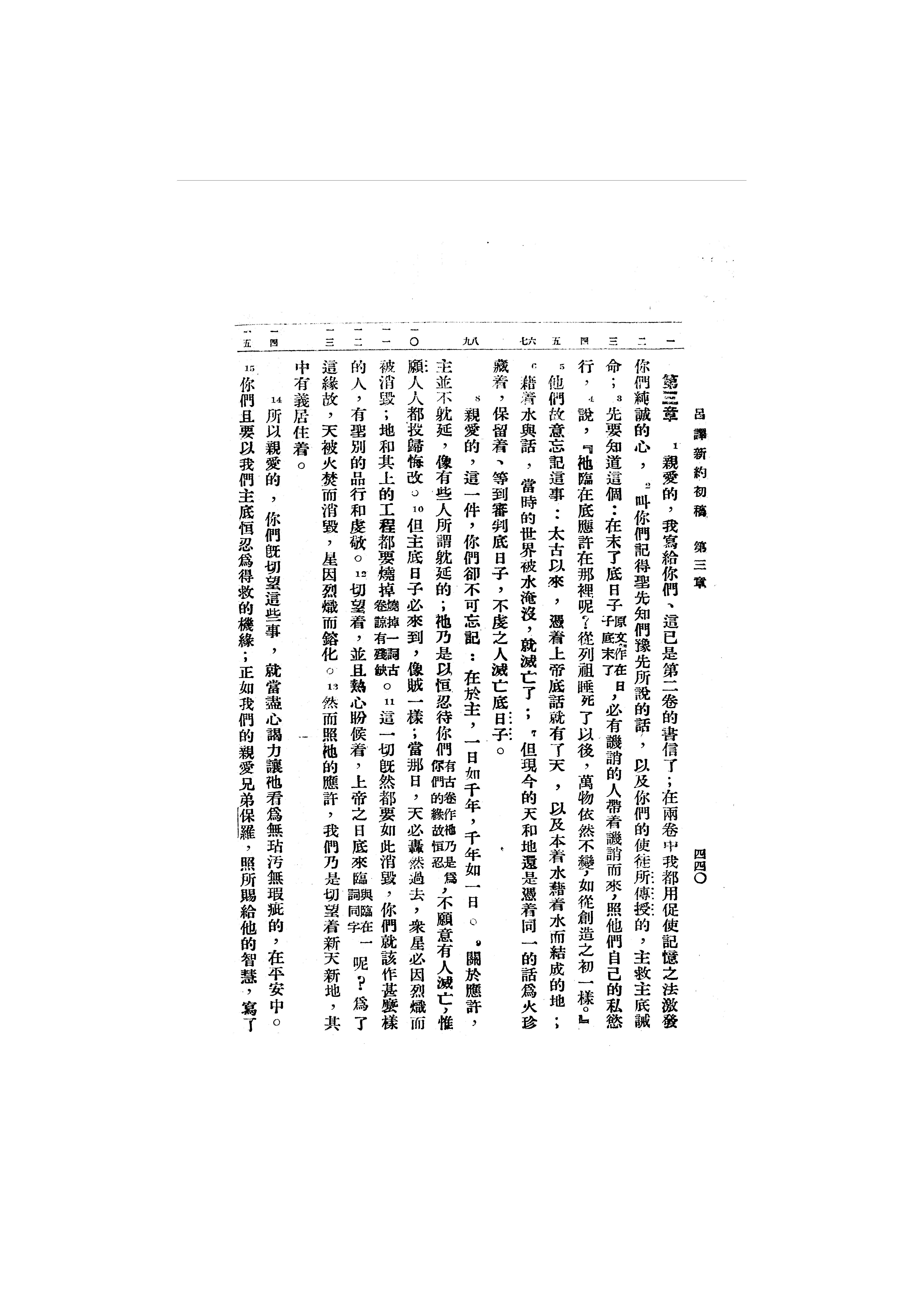 1946年呂振中譯新約初稿 彼得後書 3 章 1 節到 3 章 15 節