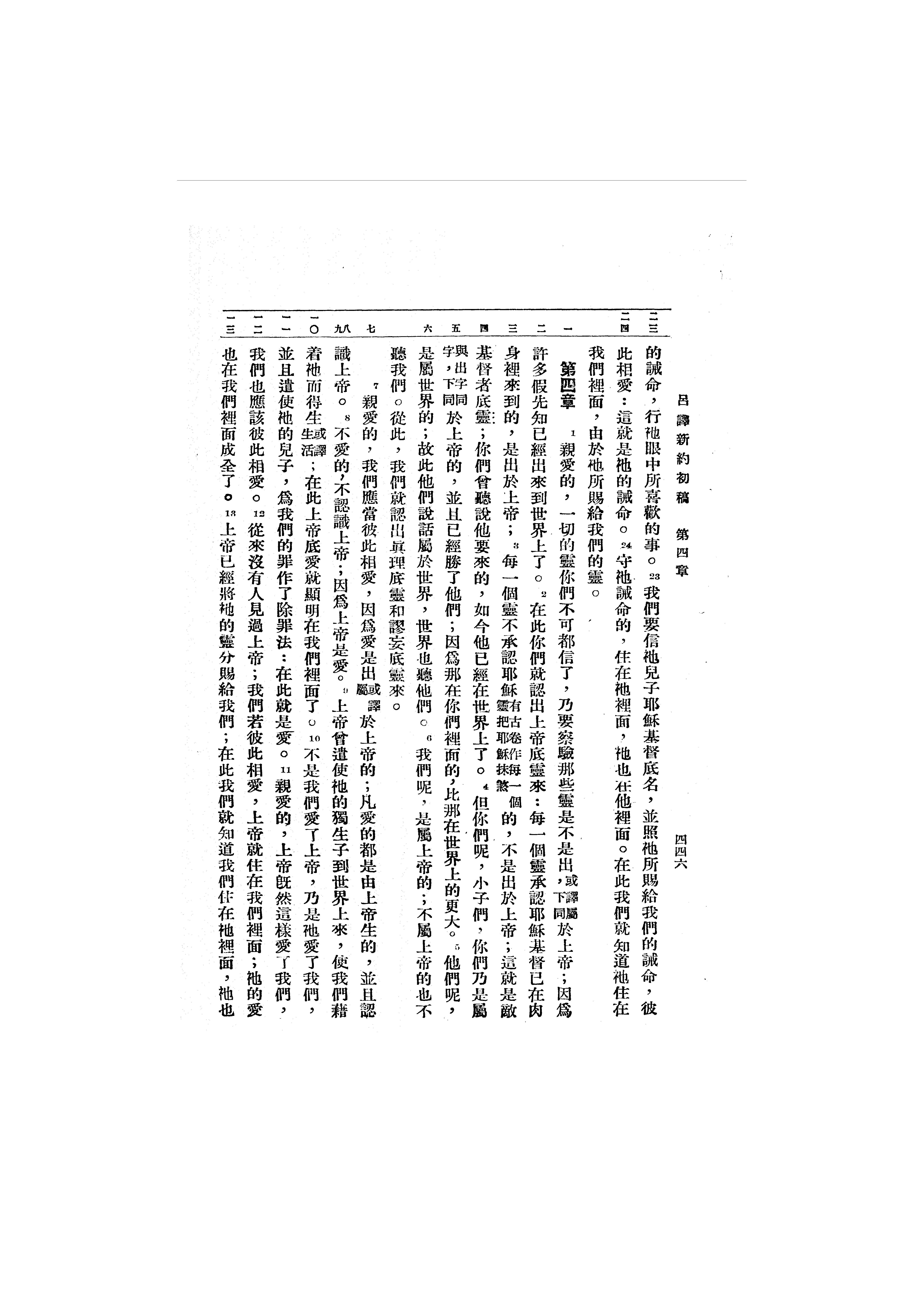 1946年呂振中譯新約初稿 約翰一書 3 章 23 節到 4 章 13 節