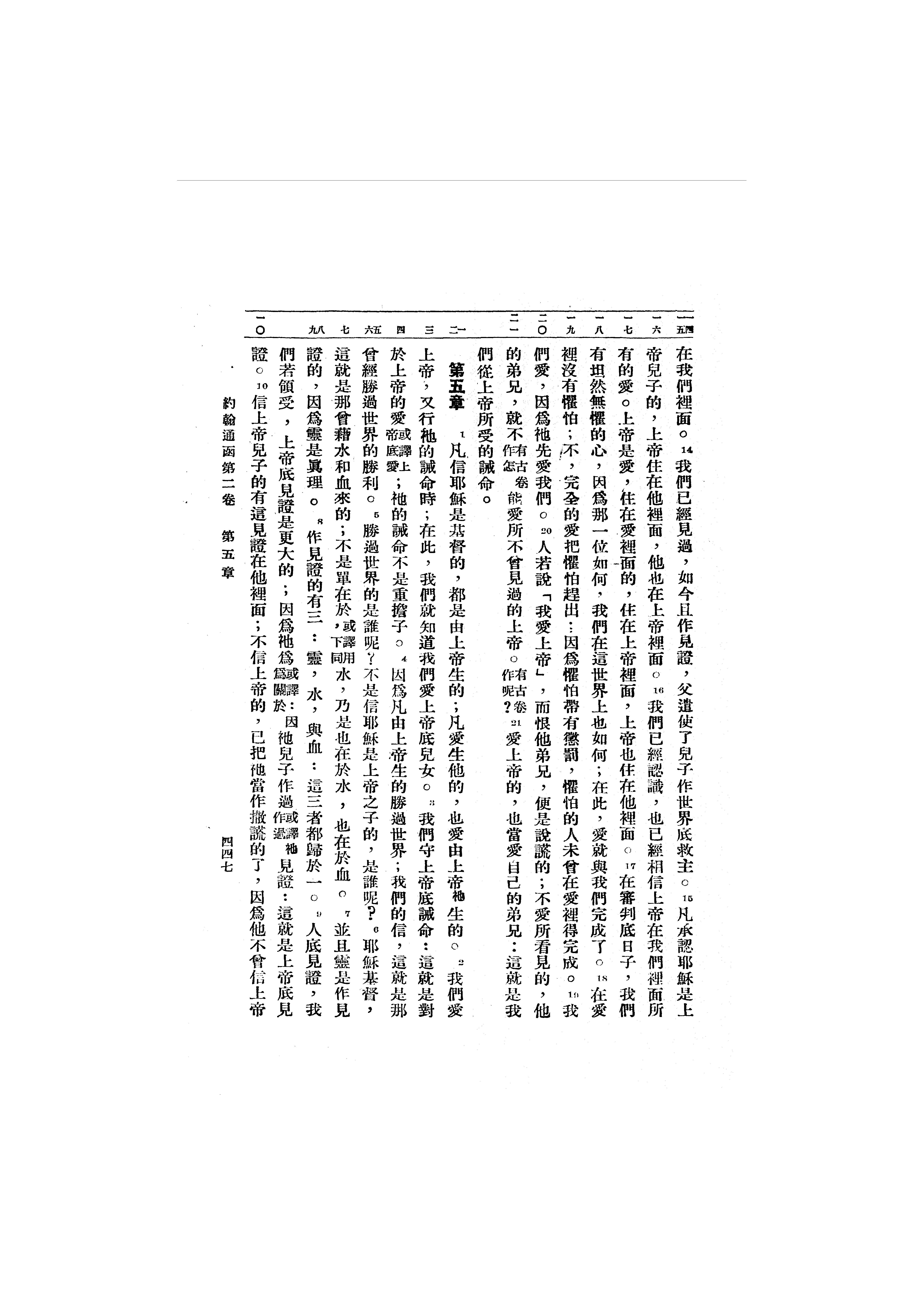 1946年呂振中譯新約初稿 約翰一書 4 章 14 節到 5 章 10 節