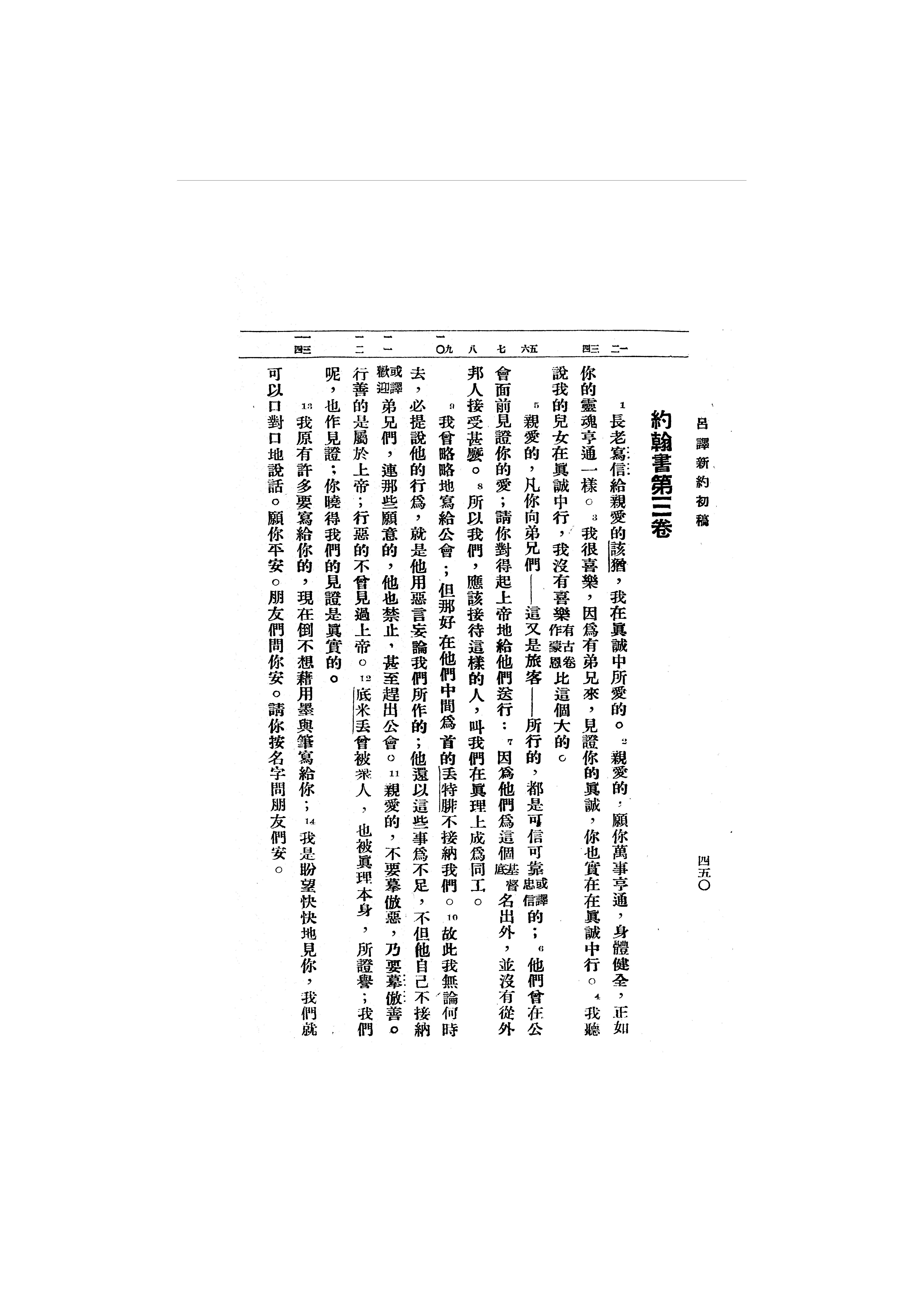 1946年呂振中譯新約初稿 約翰三書 1 章 1 節到 1 章 14 節