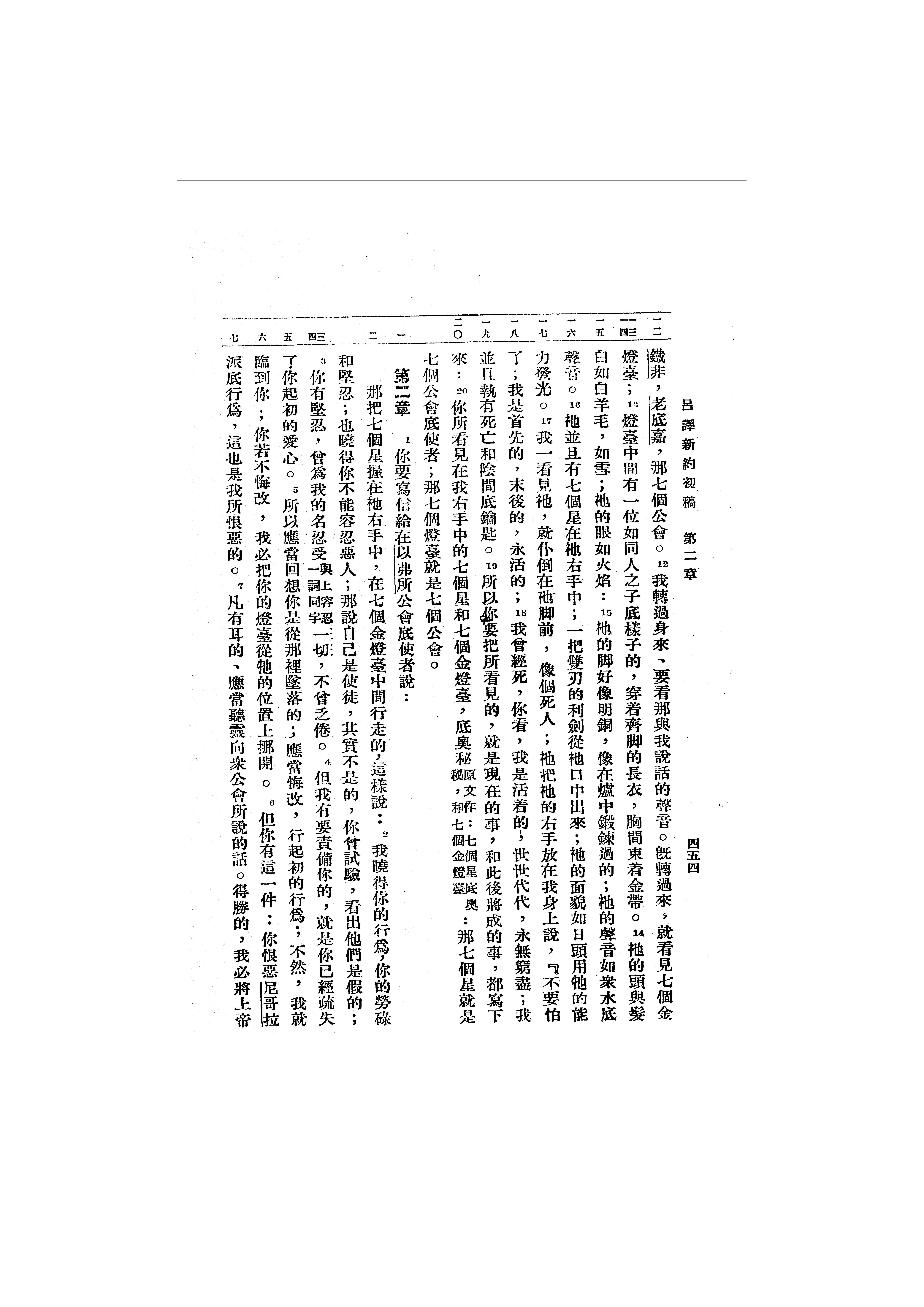 1946年呂振中譯新約初稿 啟示錄 1 章 12 節到 2 章 7 節