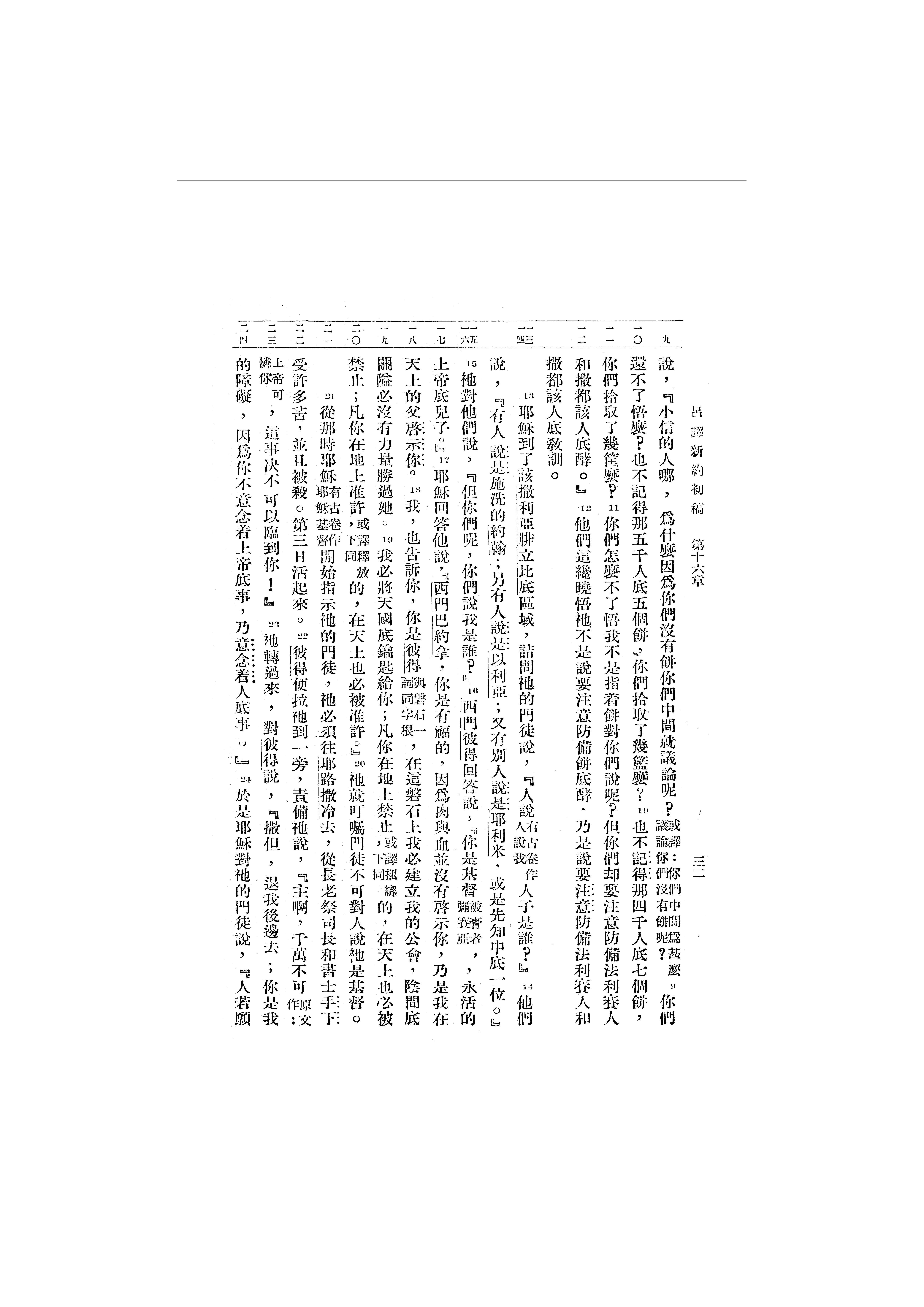 1946年呂振中譯新約初稿 馬太福音 16 章 9 節到 16 章 24 節