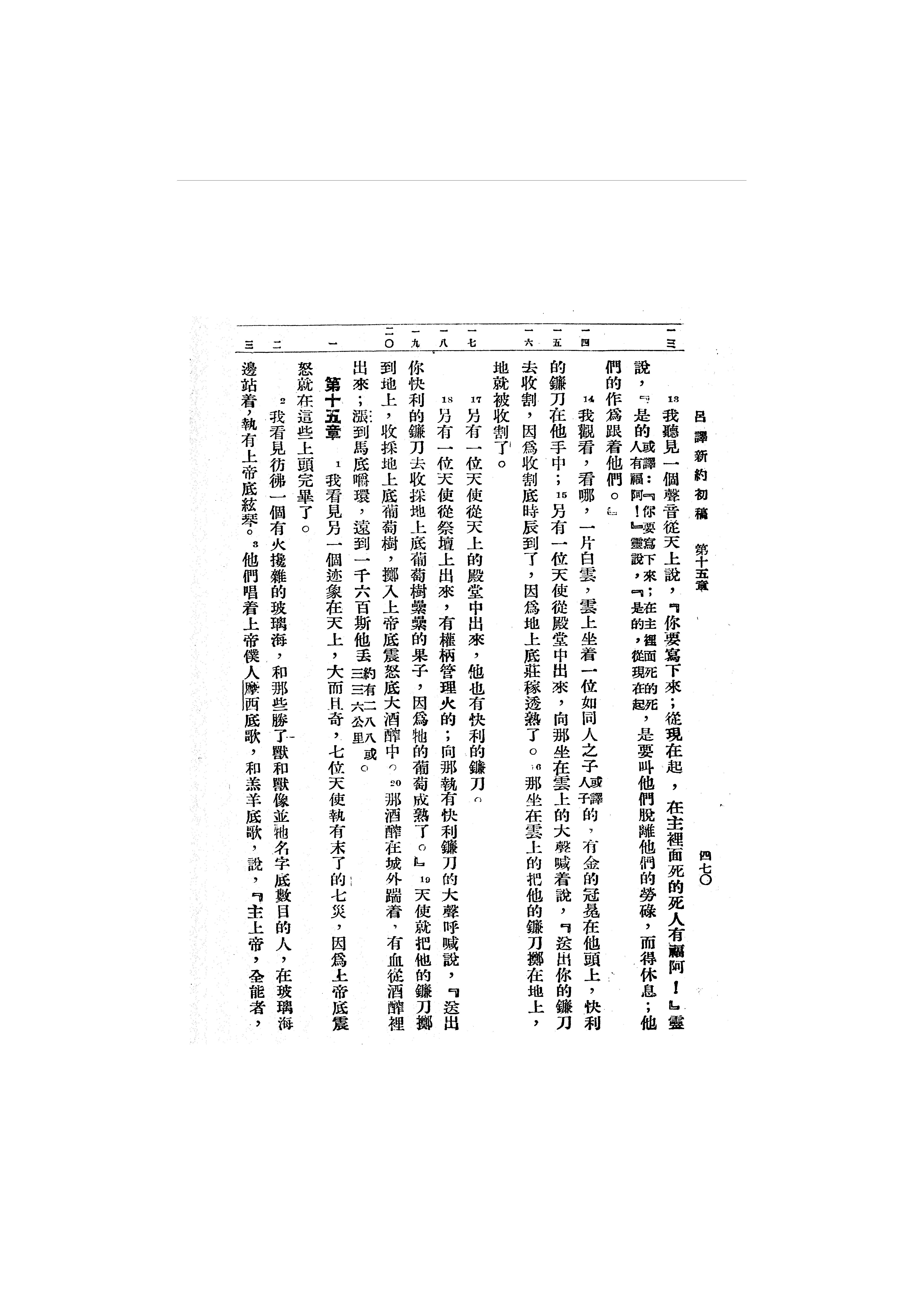 1946年呂振中譯新約初稿 啟示錄 14 章 13 節到 15 章 3 節