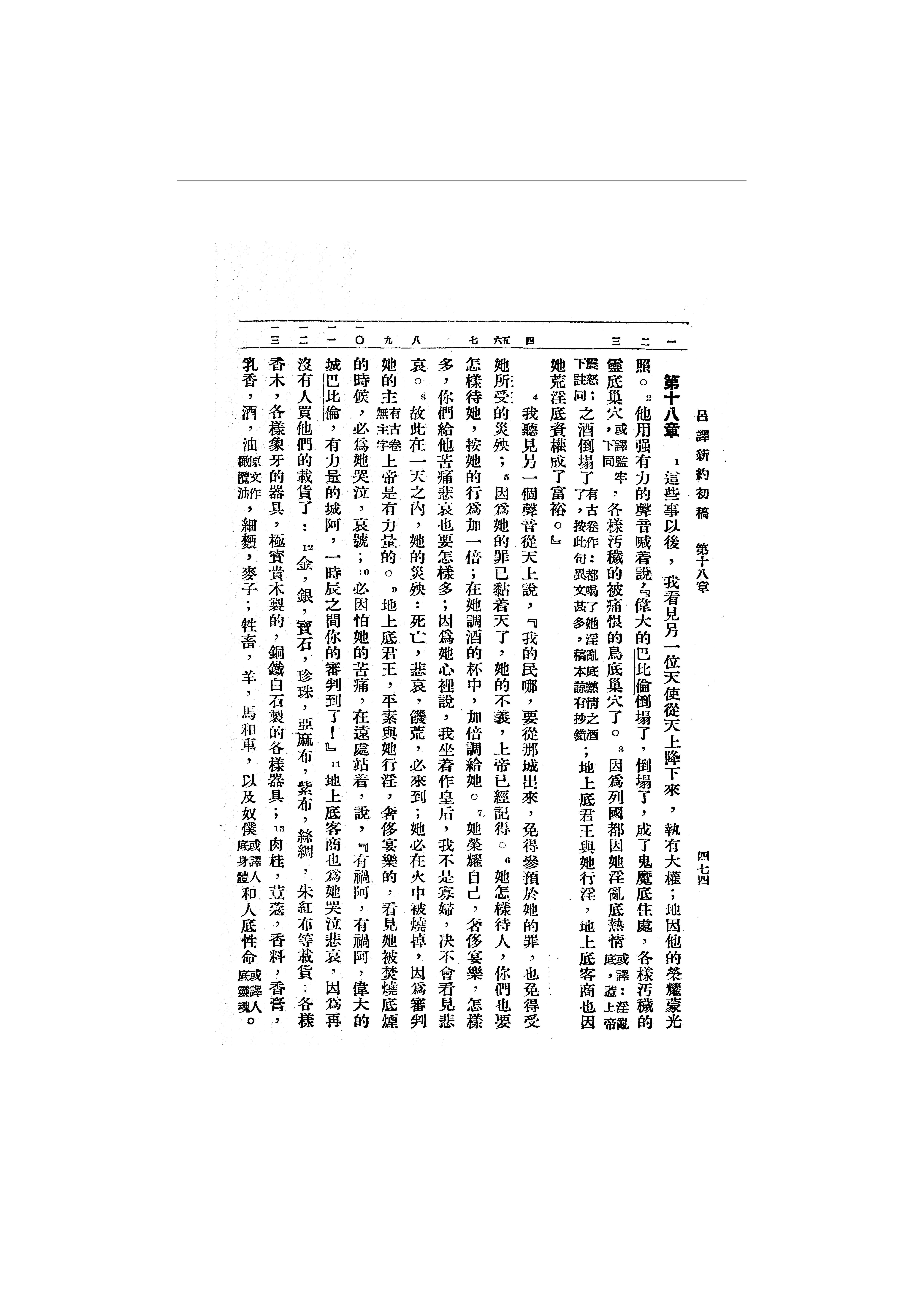 1946年呂振中譯新約初稿 啟示錄 18 章 1 節到 18 章 13 節