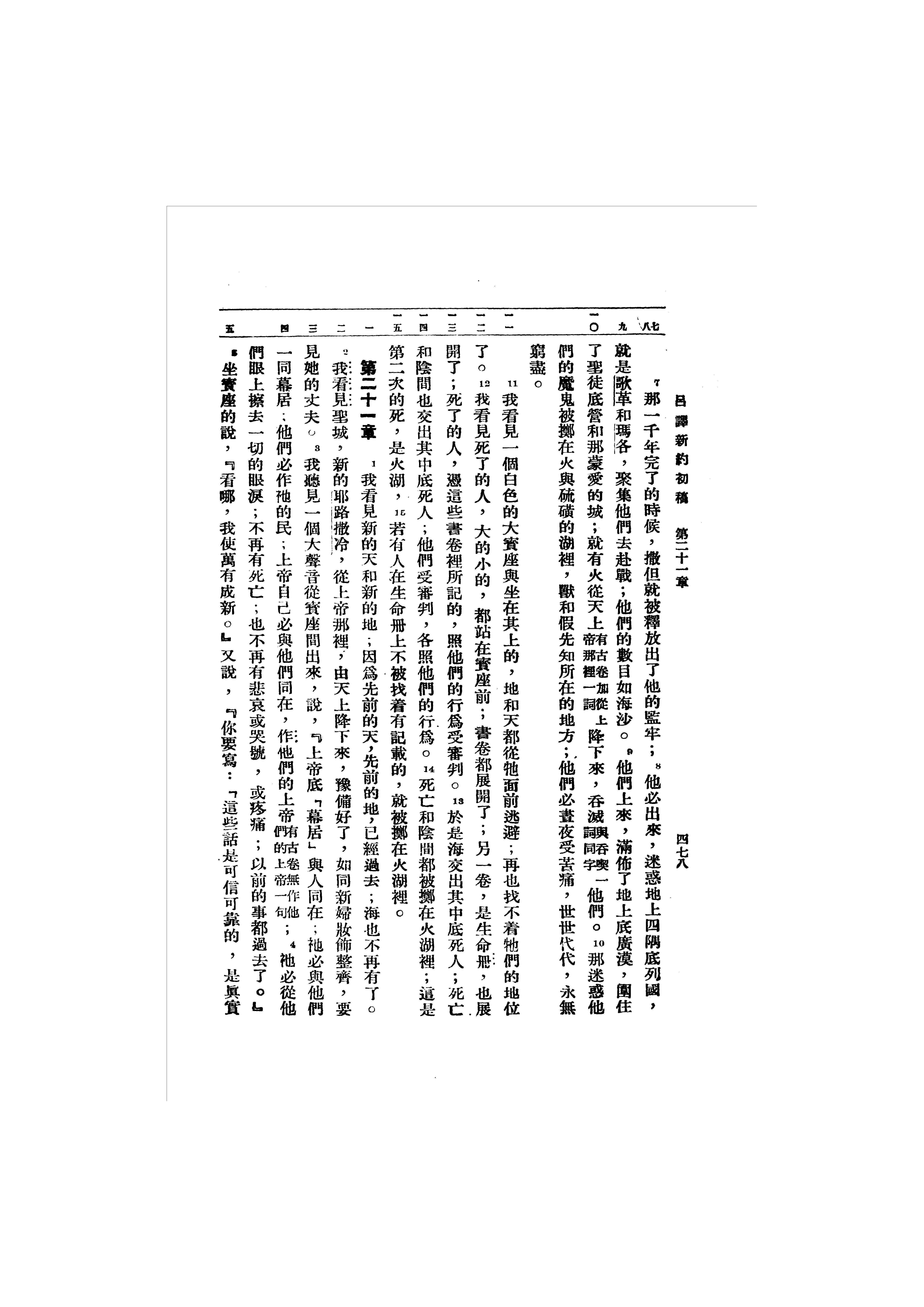 1946年呂振中譯新約初稿 啟示錄 20 章 7 節到 21 章 5 節