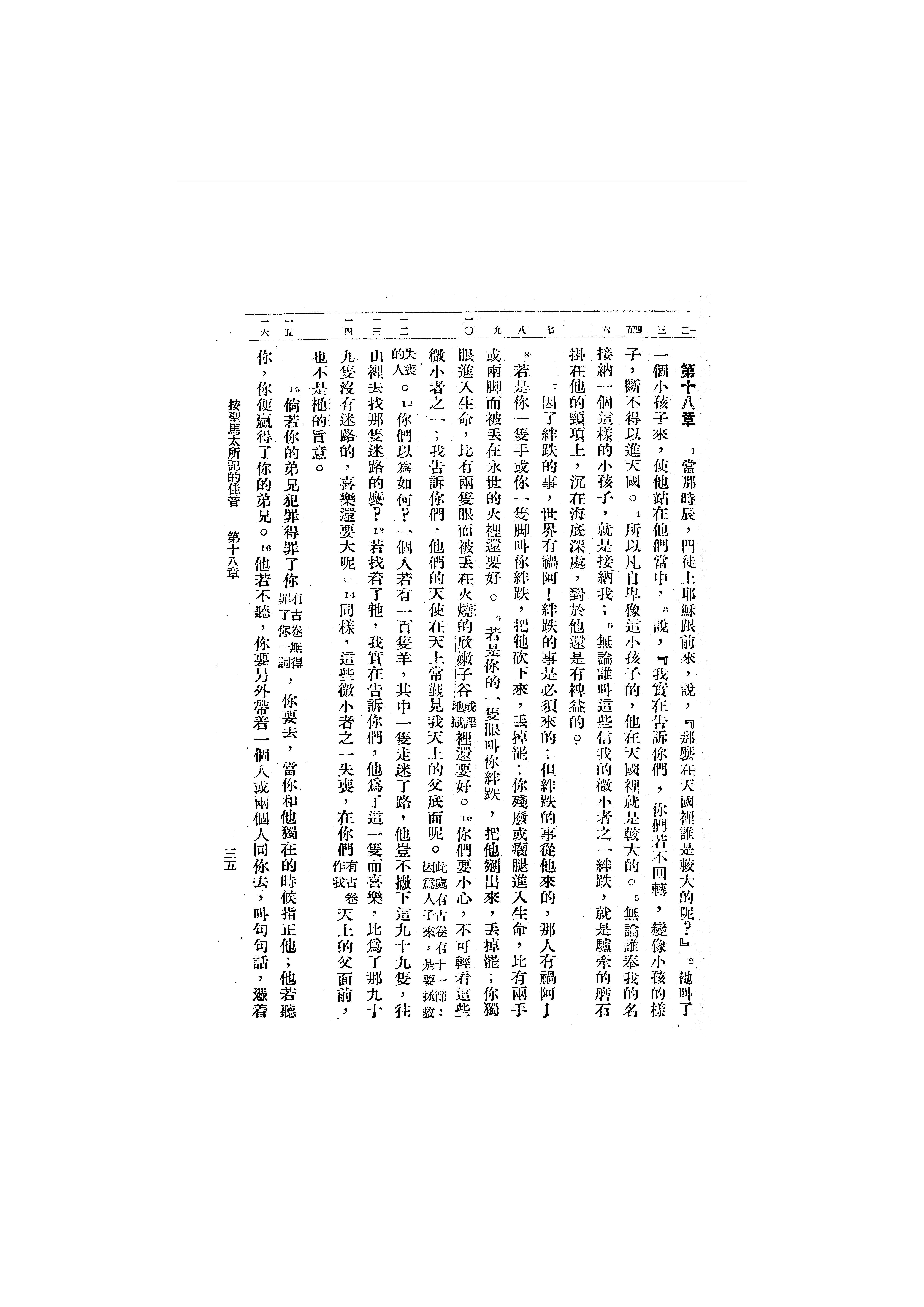 1946年呂振中譯新約初稿 馬太福音 18 章 1 節到 18 章 16 節