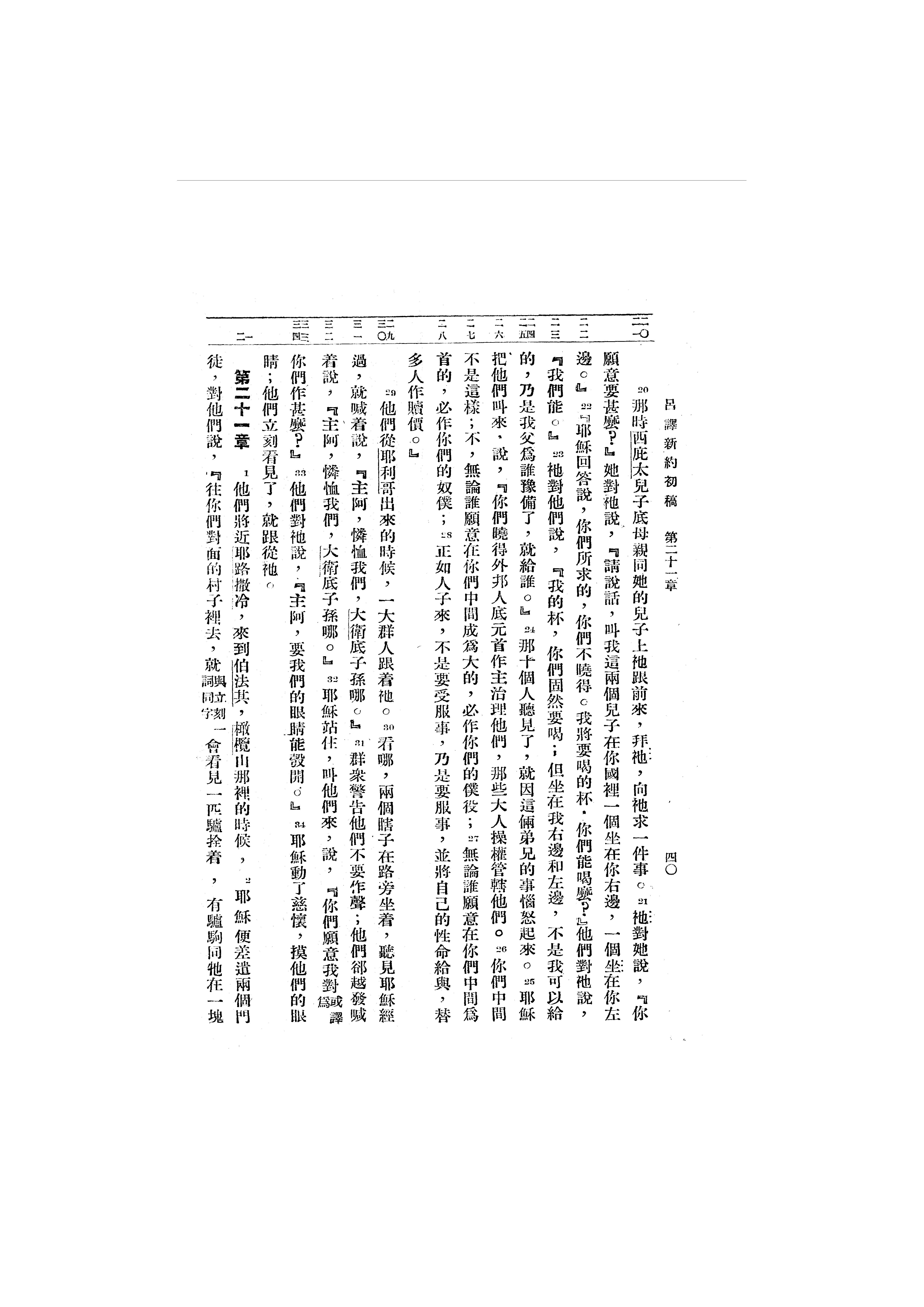 1946年呂振中譯新約初稿 馬太福音 20 章 20 節到 21 章 2 節